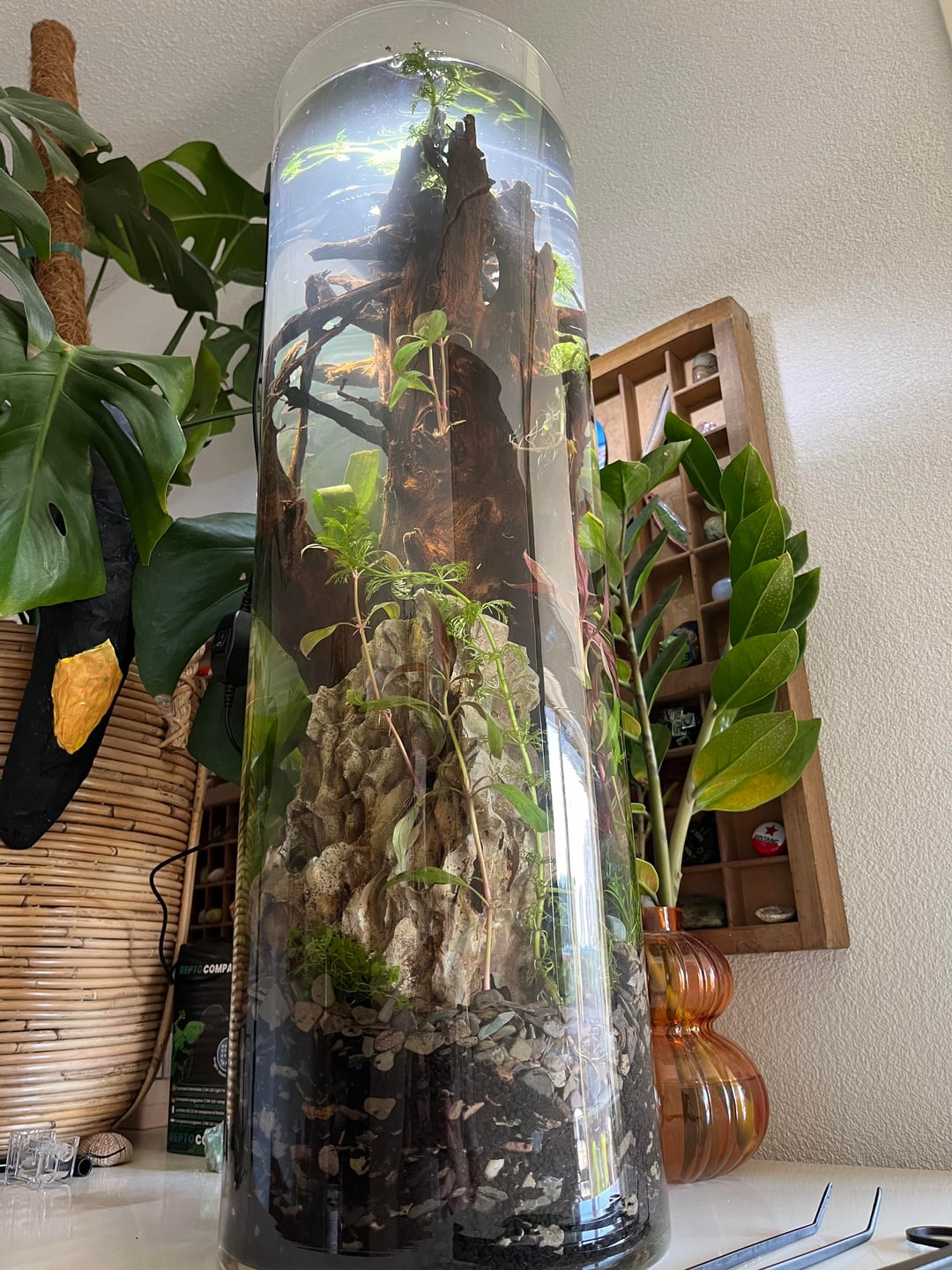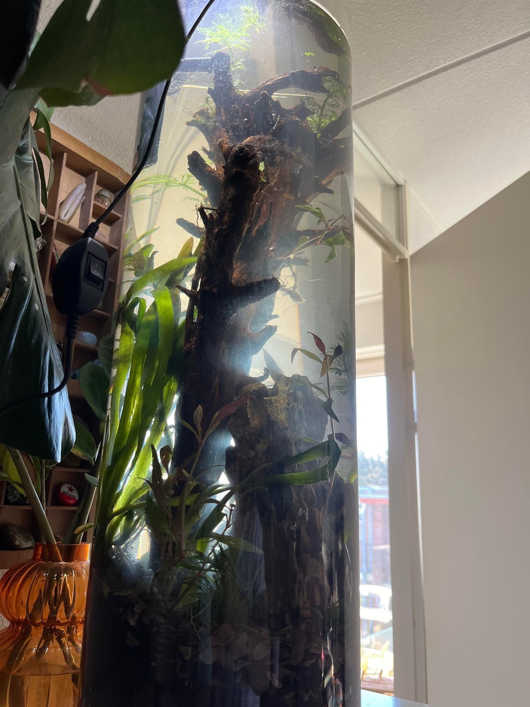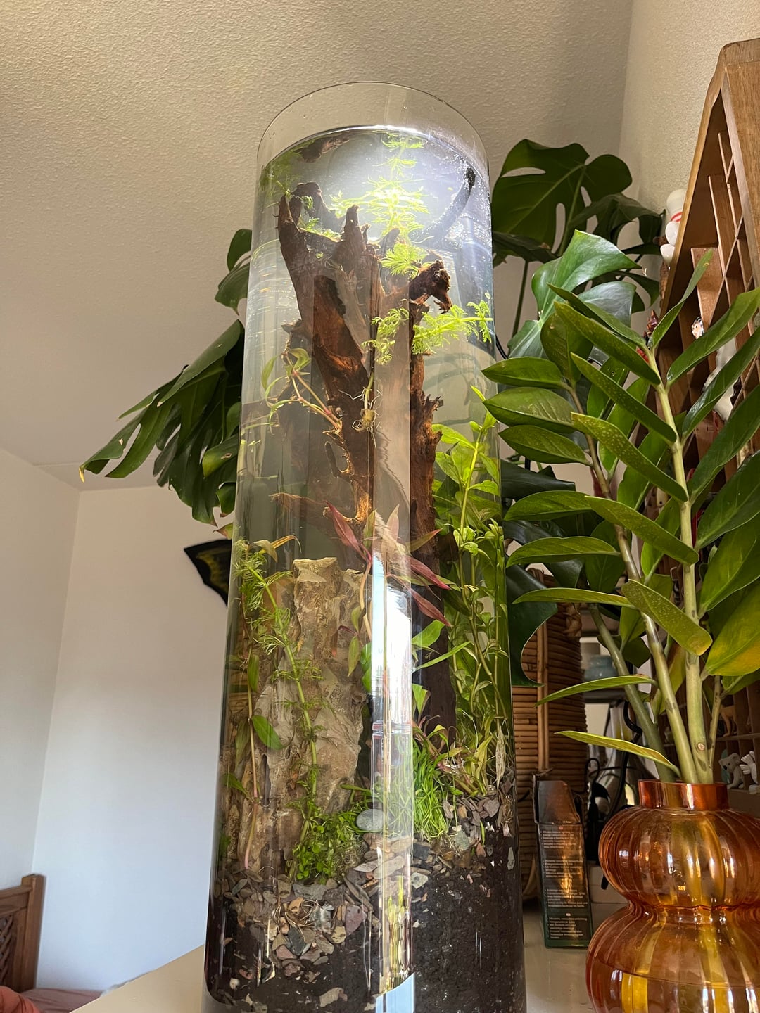 I’ve found this pretty big 80 liter vase, in a thrift shop. I decided to turn it into an aqua scape. It’s 65cm tall and has a diameter of 20 something centimeters. Probably not ideal for populating with nanofish. I was thinking about shrimp? Or are tetra’s possible?