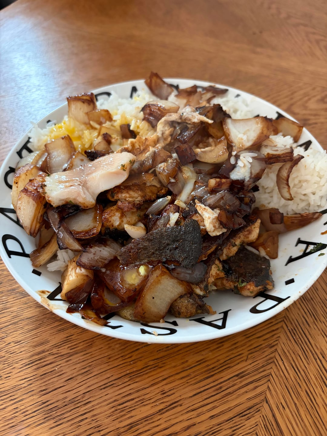 Simply pan fried with Salt and pepper, with onions saturated in balsamic vinegar and a sunny side up egg on top of rice Posted by Molly-Lucifer-672