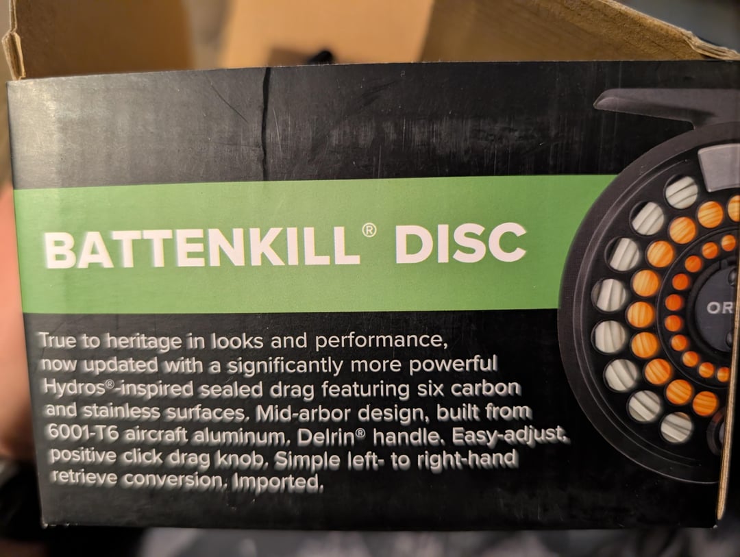 Built a new 5Wt dry fly rod over the winter and needed a new reel for it. Had my eye on those spiffy Battenkill disk reels in anodized colors like olive and even did my wraps to get it all to match. Get my reel today and…"Made in China". ..dammit Orvis it's a $250 reel and it's made in China? I coulda got a Lamson Liquid for $100 less for that.