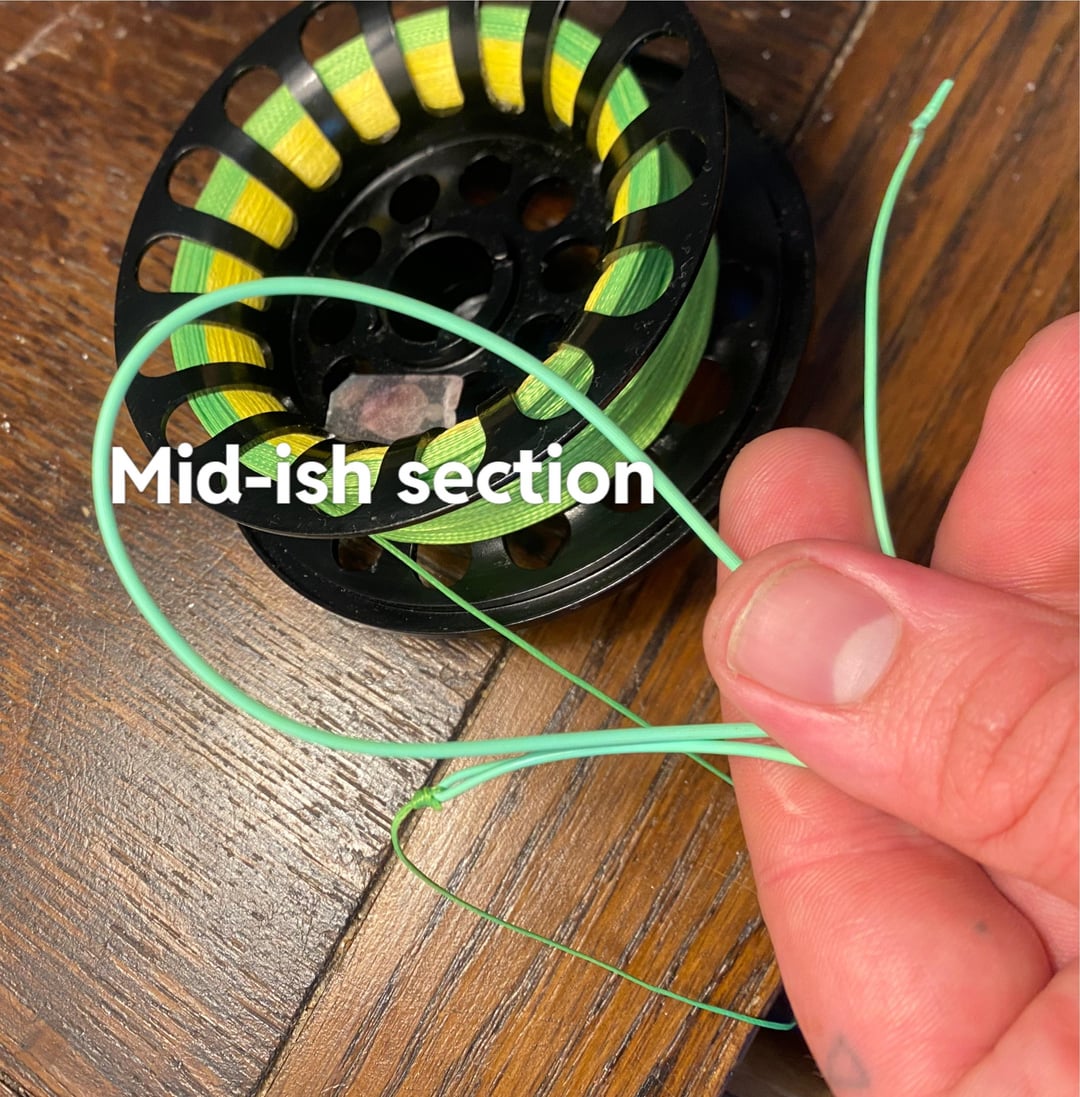 It’s one a spare spoon I found, unmarked. It looks like my grandad tied it on backwards unless he trimmed off a loop. The two end sections are pictured, along with what I’d call the mid section but I don’t have the space to lay it out properly atm. The ends look thinner than the middle, what type of fly like could this be ? Also is there anyway of telling the weight of an unknown line? I need an 8wt line and ik he used to fish for bonefish on an 8wt set up I think so wondering if this is the line he used.