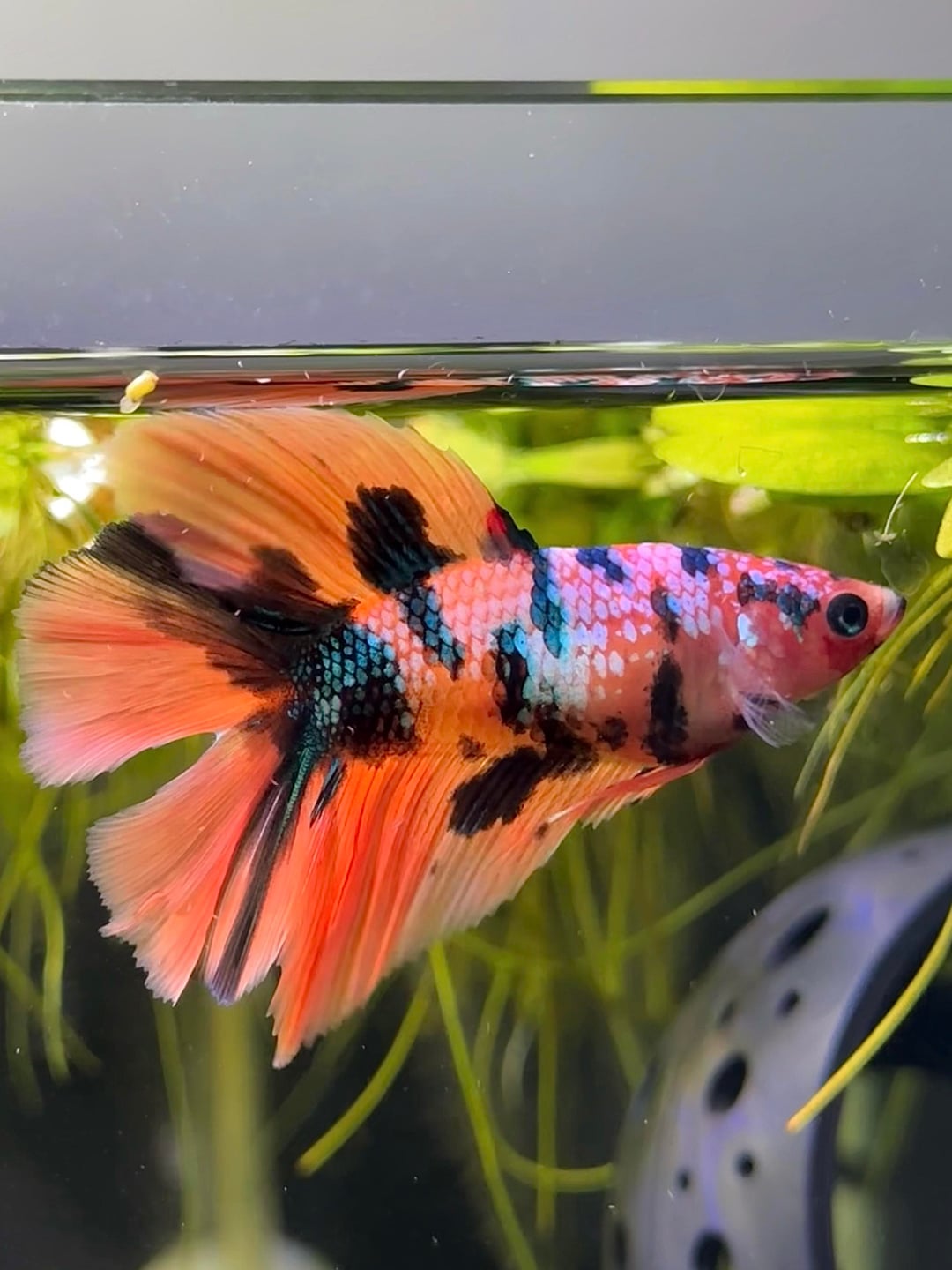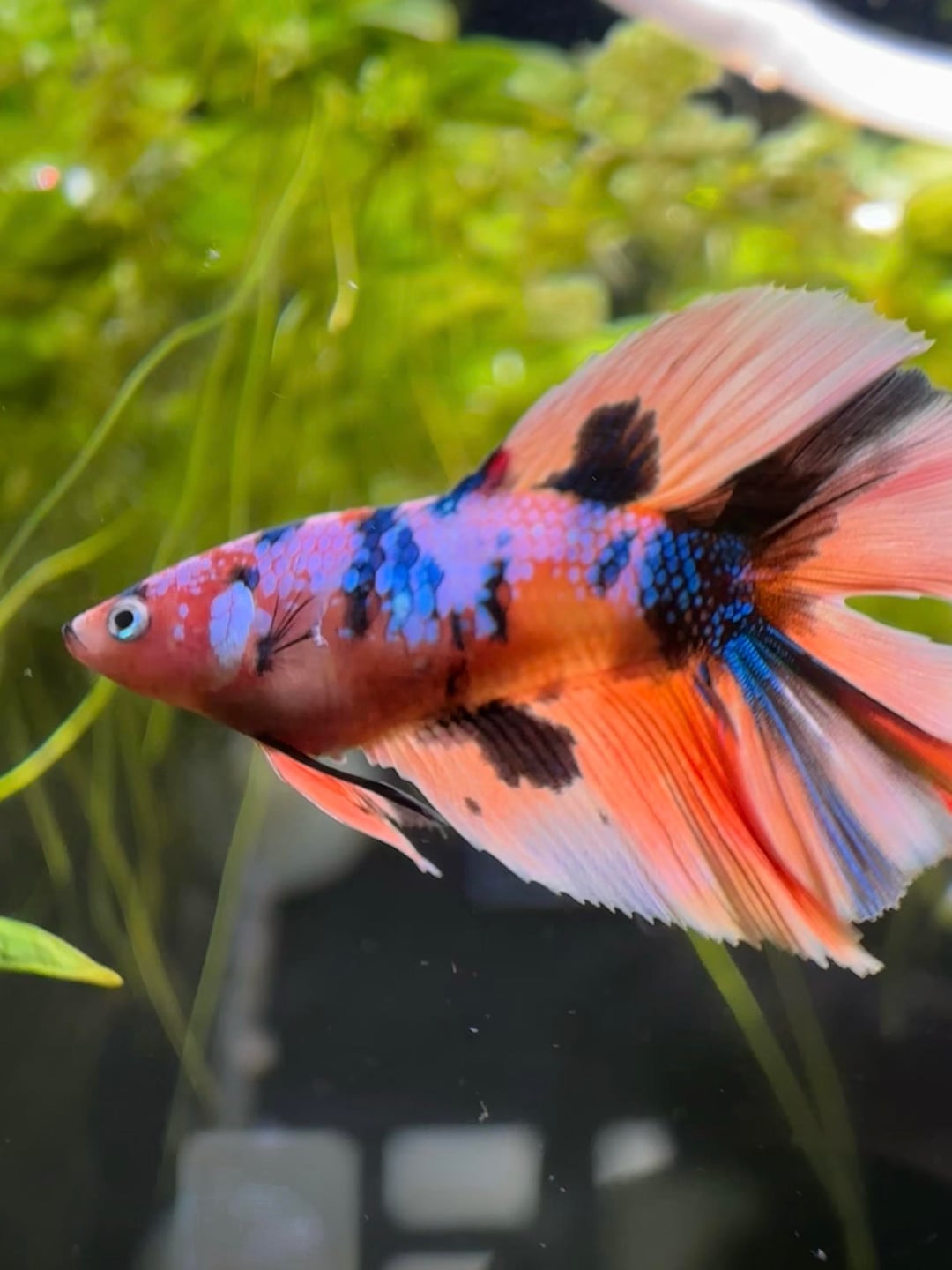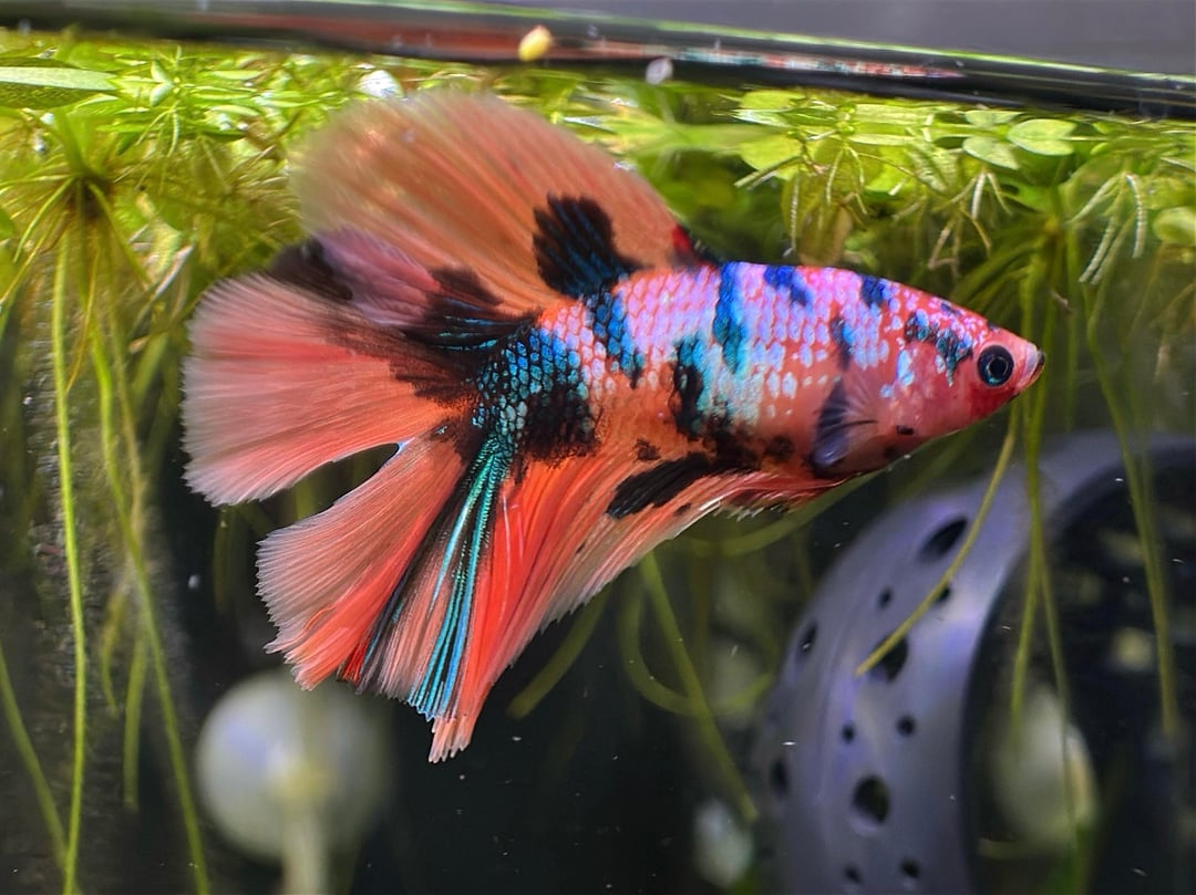 she arrived last friday (6m old approx) and she is perfect!!! she’s a koi galaxy double tail half moon :)))