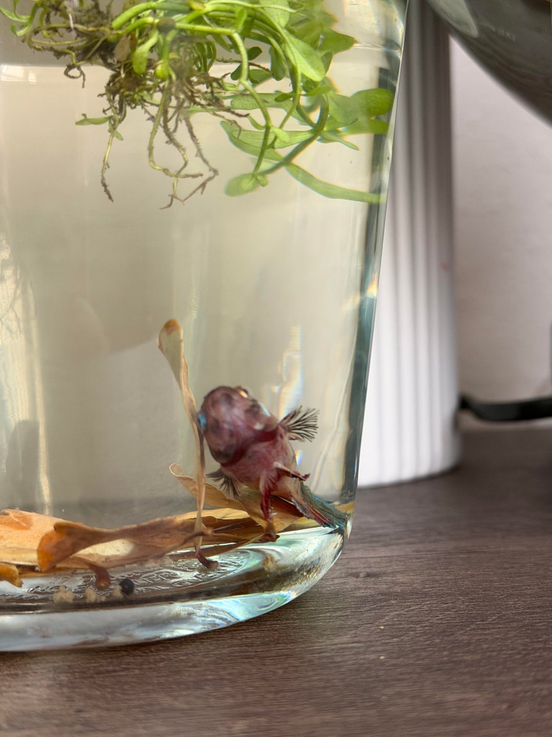 He started acting this way after adding 3 ghost shrimp and another snail in my tank.