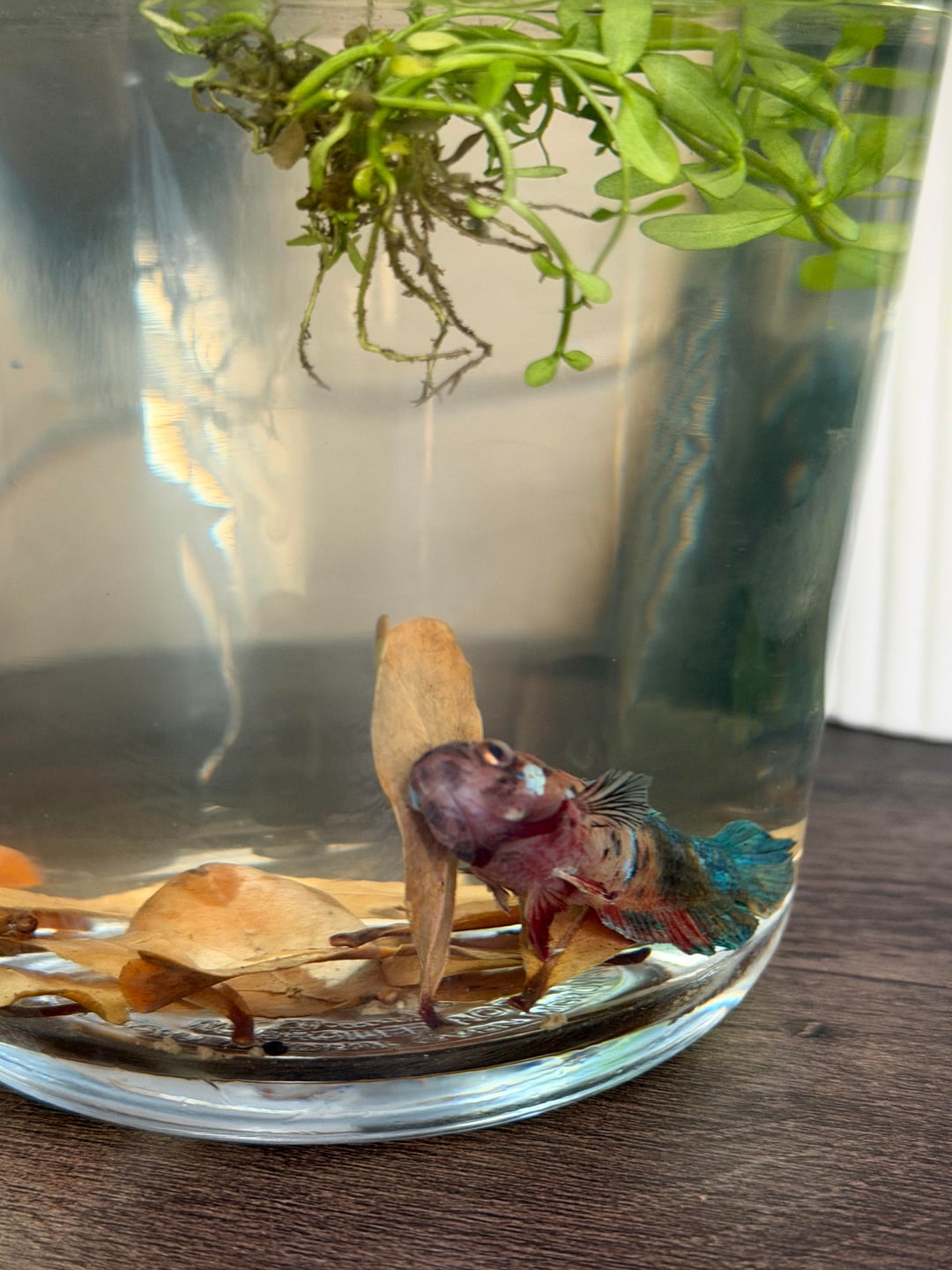 Ive noticed my betta breathing odd and sinking more to the bottom. I separated him from the tank with some catappa leaves. What else can I do ):