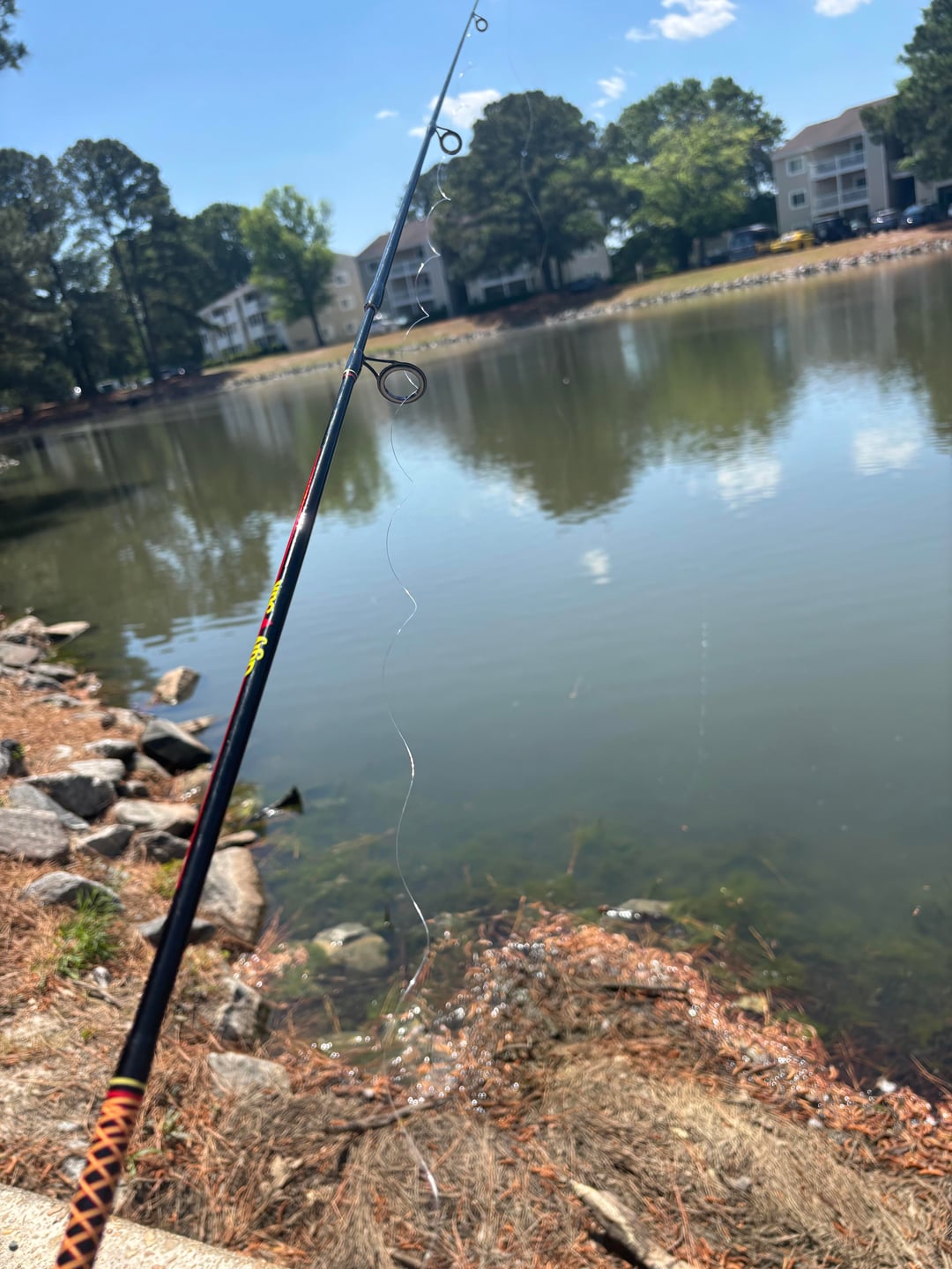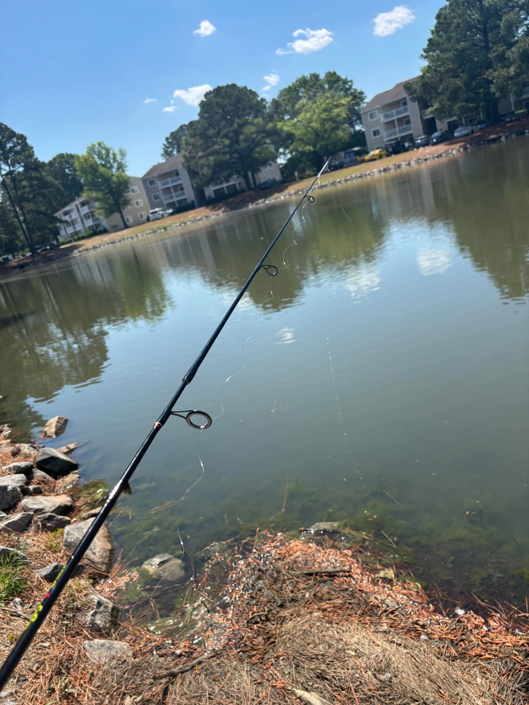 Hey yall, trying to teach myself to freshwater fish. This is just a hook with a nightcrawler, a few split weights, and a clip on bobber. Just trying to catch anything in my apartment complex’s pond that’ll bite.