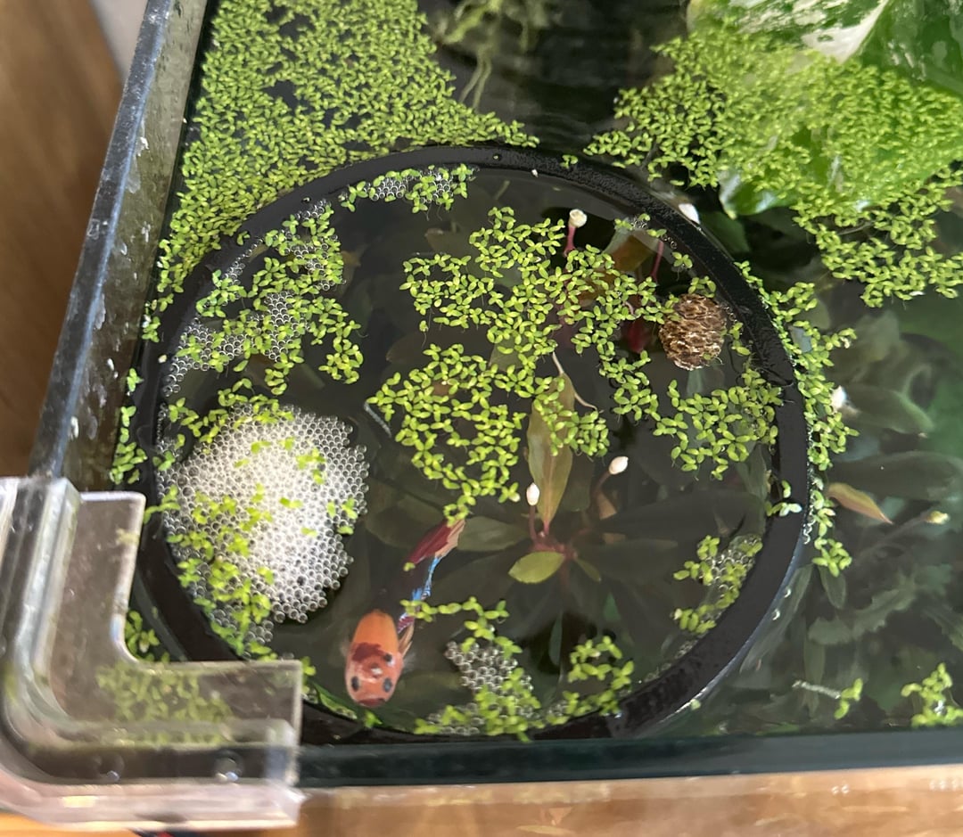 I was concerned my new betta was unhappy in his new home because he seemed restless and was hanging out at the heater a lot for the last week or so. This morning I woke up to a cute little bubble nest that he’s guarding! So I guess he was just broody and trying to find a good spot?