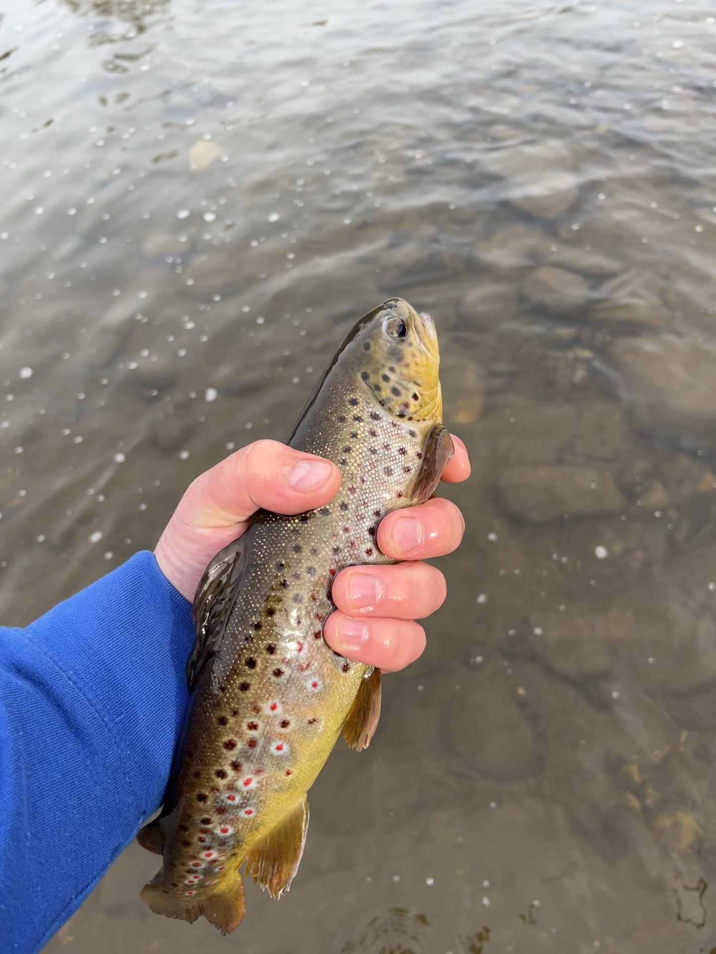 Had a good morning caught 11 little guys and ended with this decent size Brown. They were loving the pink spinner, I usually use spoons as my go to but after 6 catches I felt confident to try something else and they really liked the switch up. Posted by Yojimbong