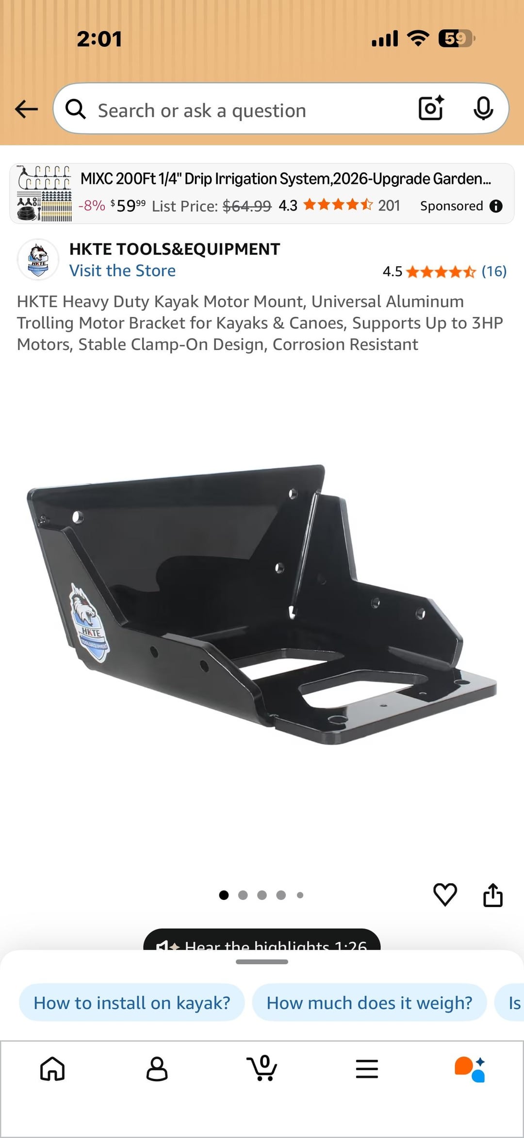 I have a flat back on my Crescent kayak so i can use the clamps directly on the kayak, but I also a bar to mount the motor next to me like the other comment, but the drag in ocean current convince me to keep it on the back. I have the same tiller, works great.