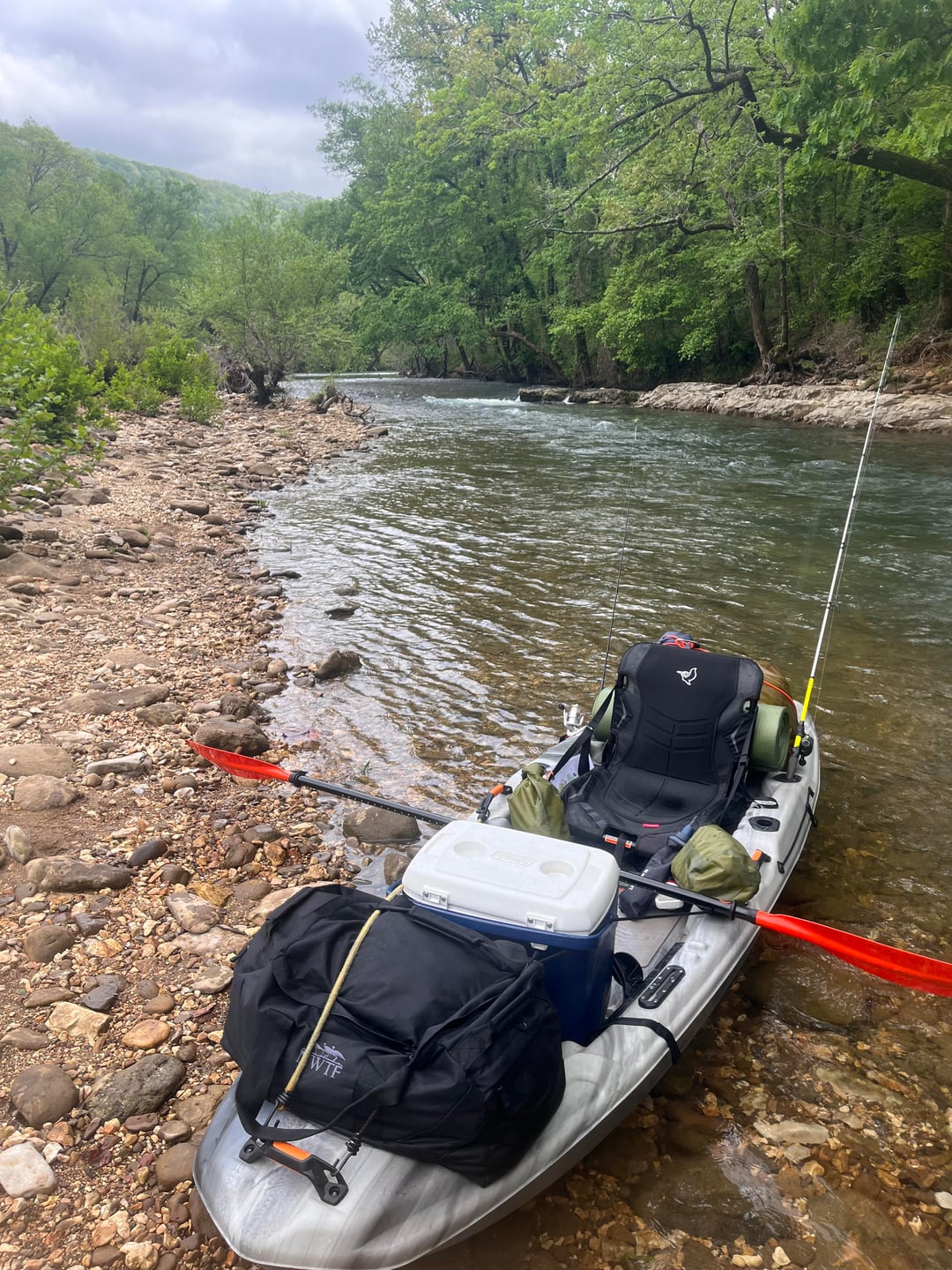 Went on a 3 day trip down in Arkansas & camped along the river. Thought this was a cool looking bass. Here’s a pic of the kayak all packed up for the camping trip.