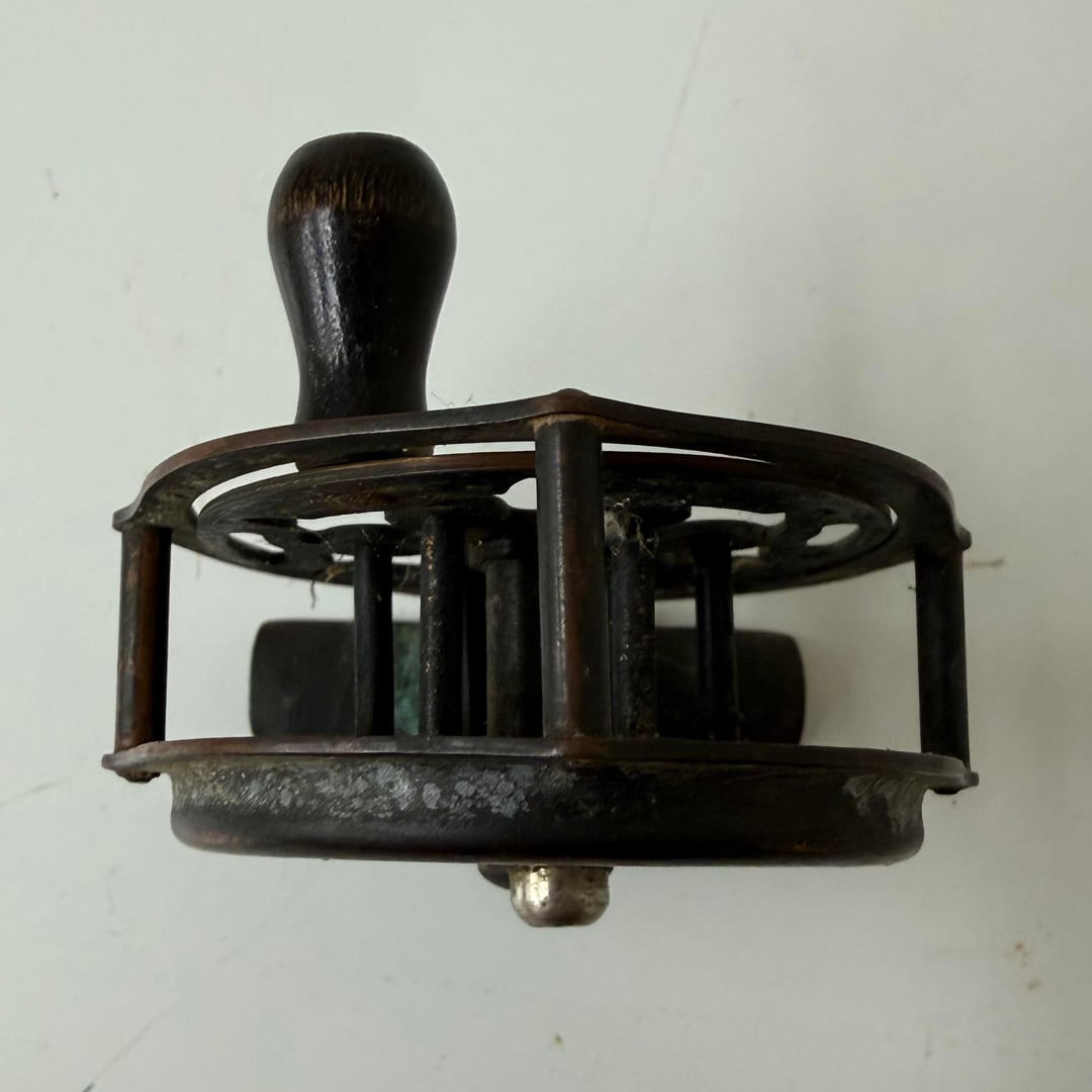 Found this reel in my late father’s fishing gear. No markings, seems to be made of copper??