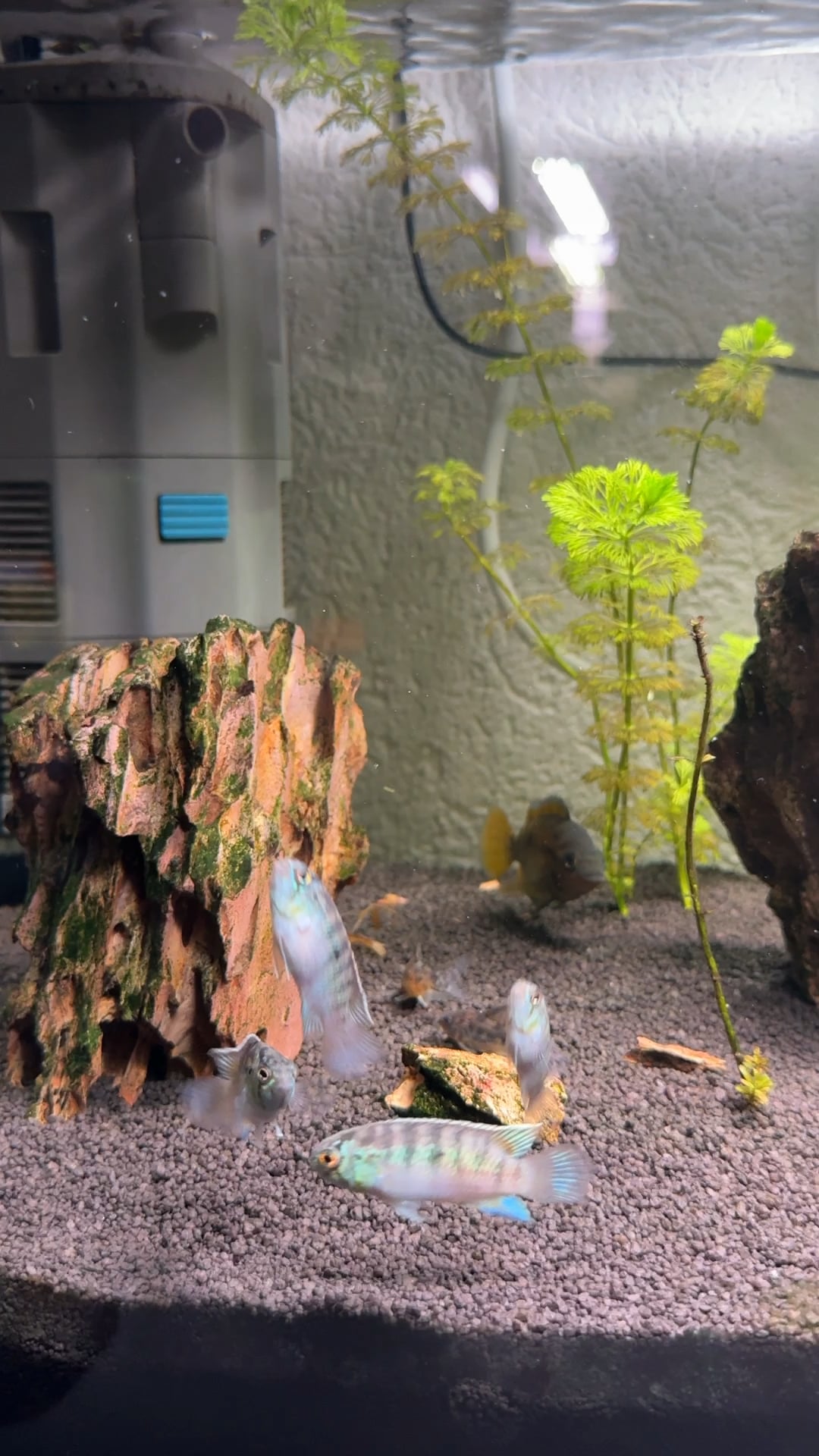 I’ve had Golden Eye cichlids (Ivanacara anomala) for several years. And while they are pretty and fairly outgoing, they can’t hold a candle to these adoketa. Been spending so much time just watching these four cuties and can’t get enough.
