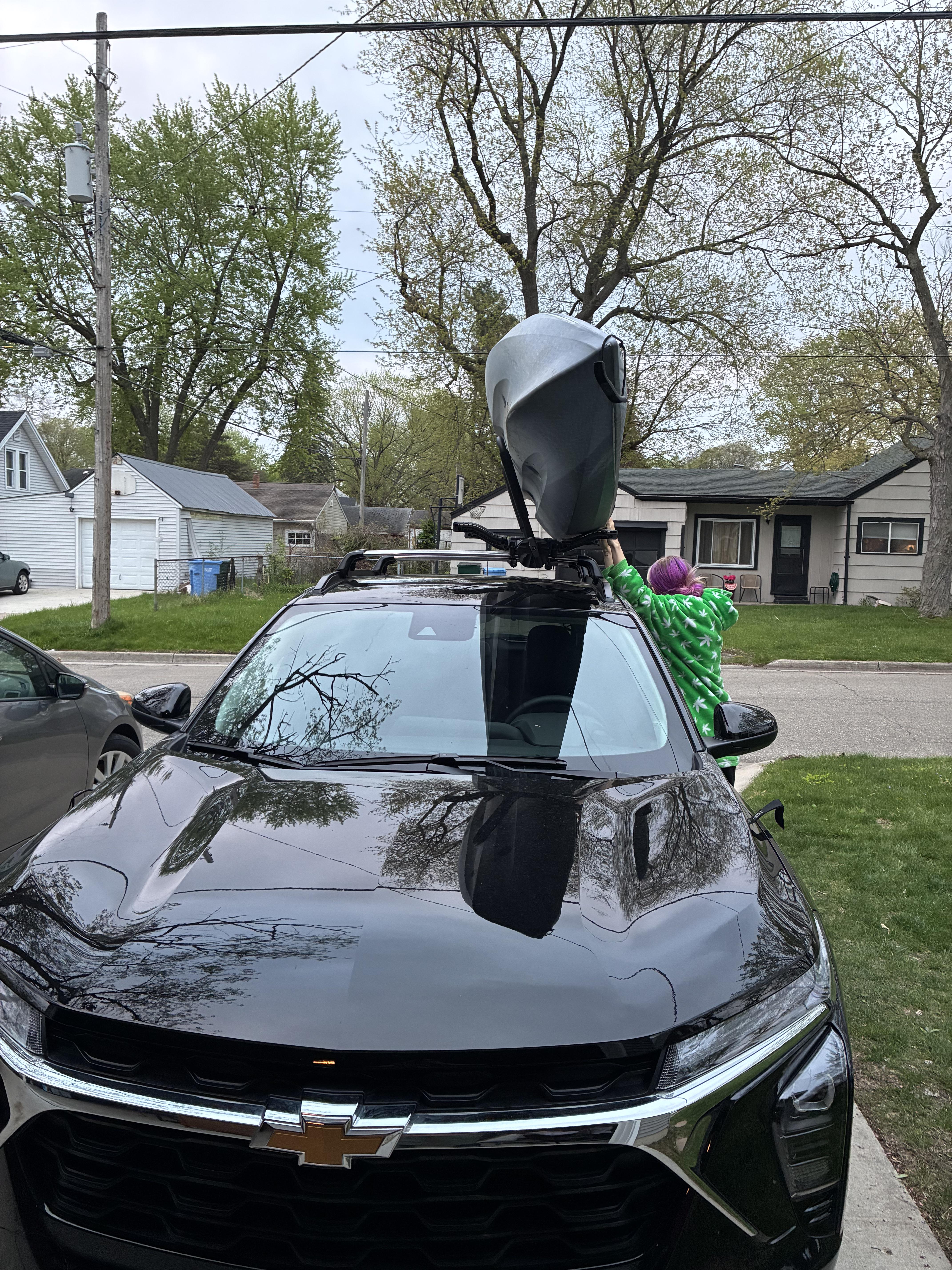 Forgot to take a pic all strapped in. I did a test run today with my new car and kayak rack. I drove it up to the self serve car and gave it a bath. Everything went smooth. Im nervous about my bow and stern lines though. How do you guys tie down?