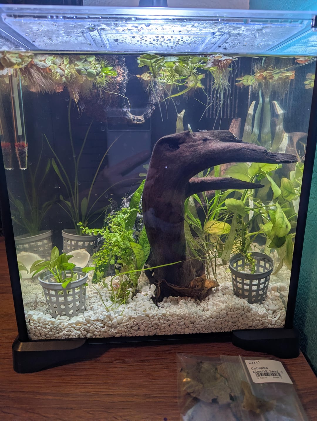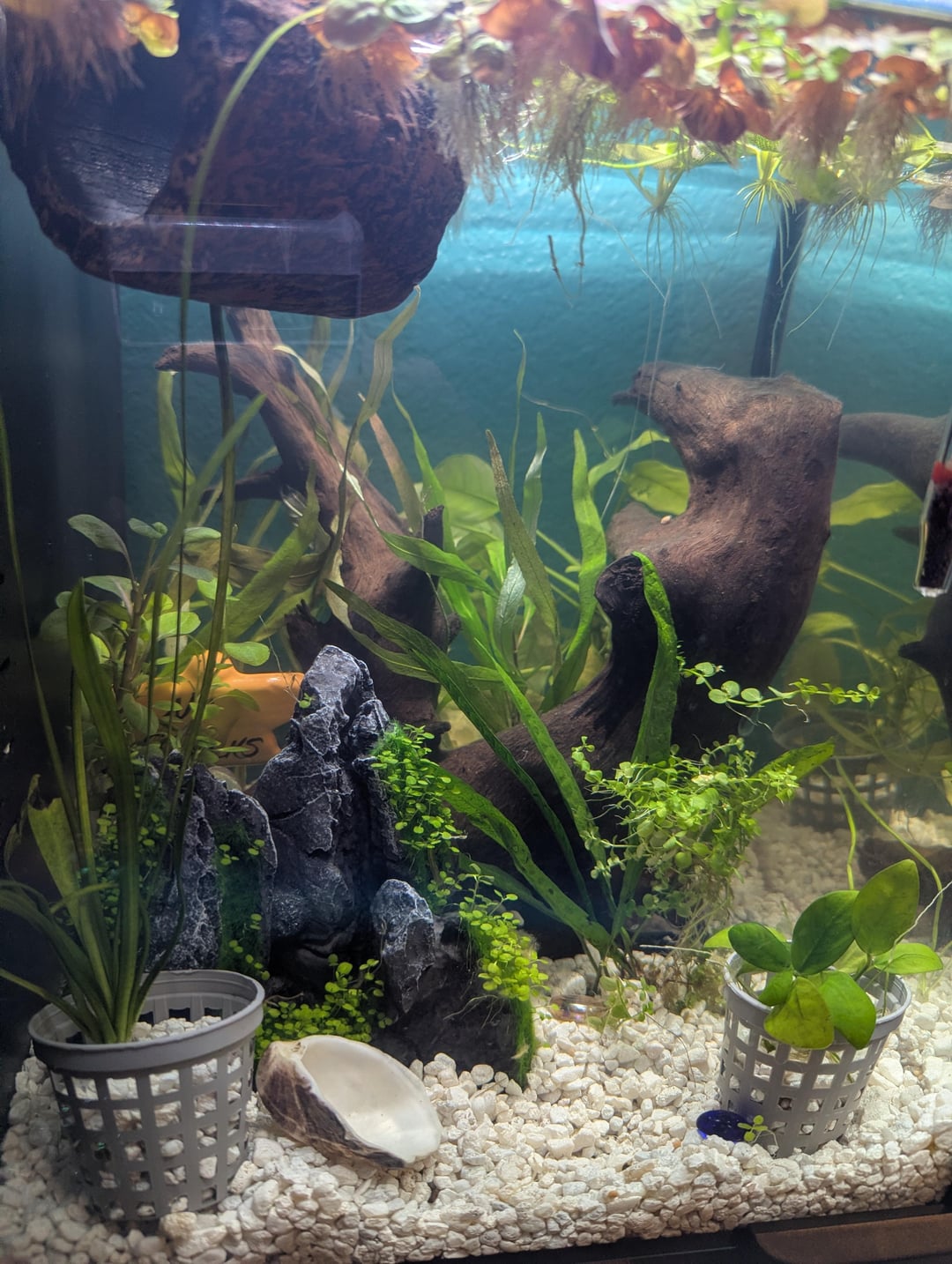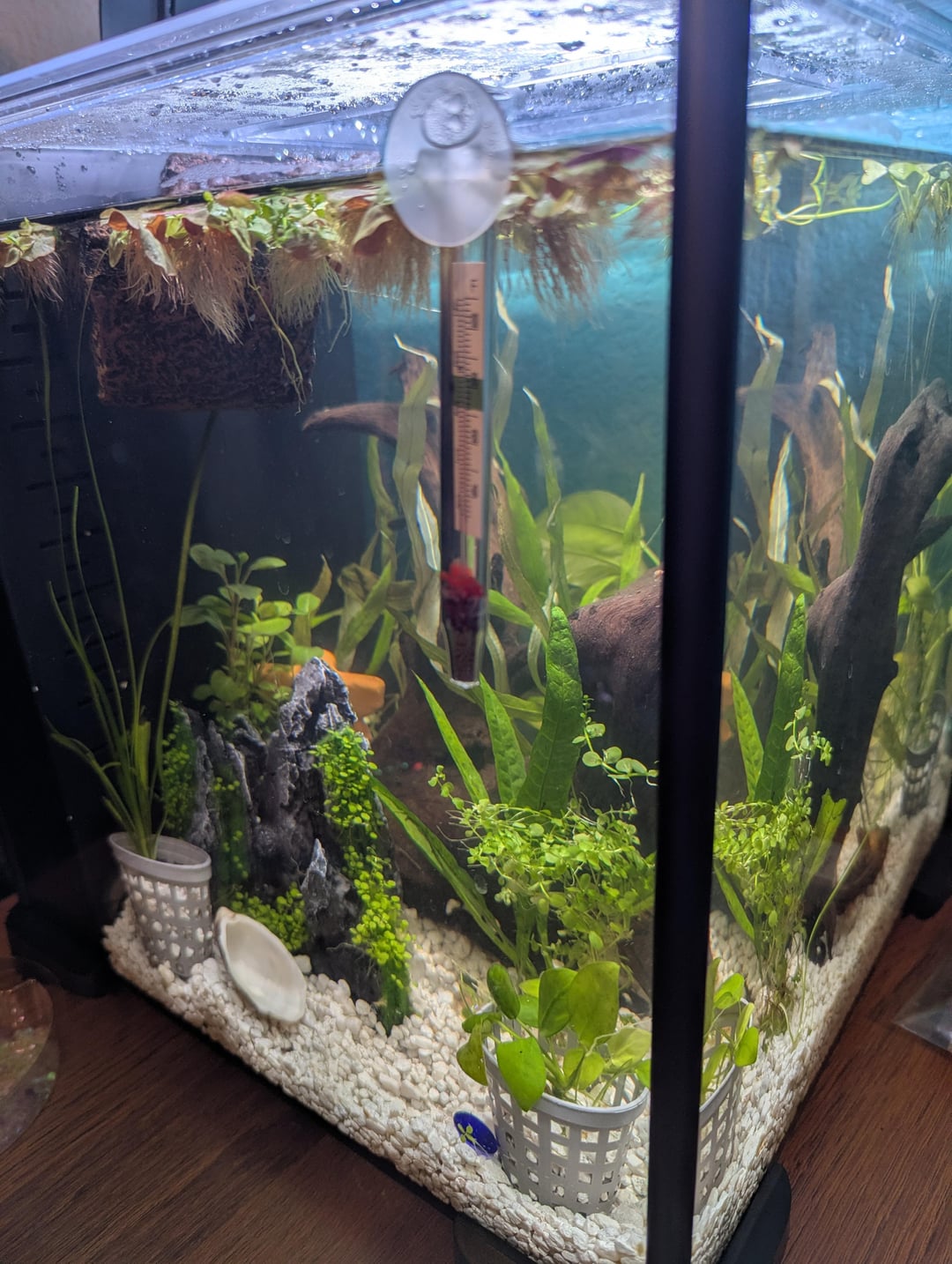 She started out talking about wanting to get these bright rainbow colored plastic plants but her dreams changed shape as she educated herself about bettas more. She's ditched the idea of artificial plants all together and has been working on making a jungle underwater. She's feeling really proud of how enriching she thinks it will be.