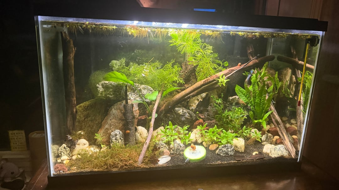 As the title says, I’ve done literally nothing to this tank. Inhabitants are snails, a betta and five otos. Posted by CrazyGamerGal