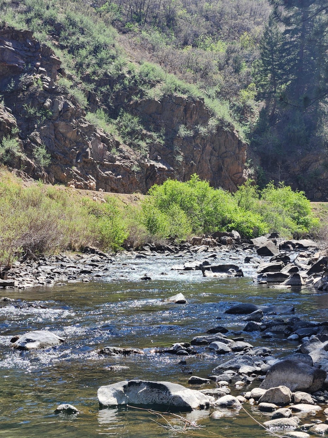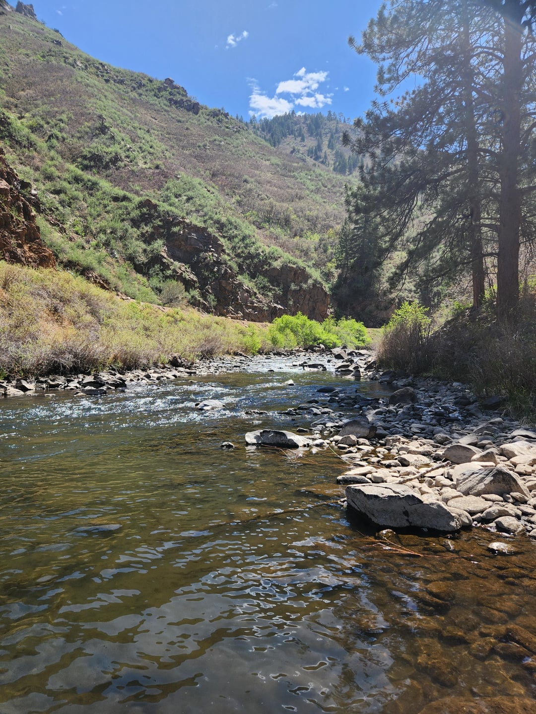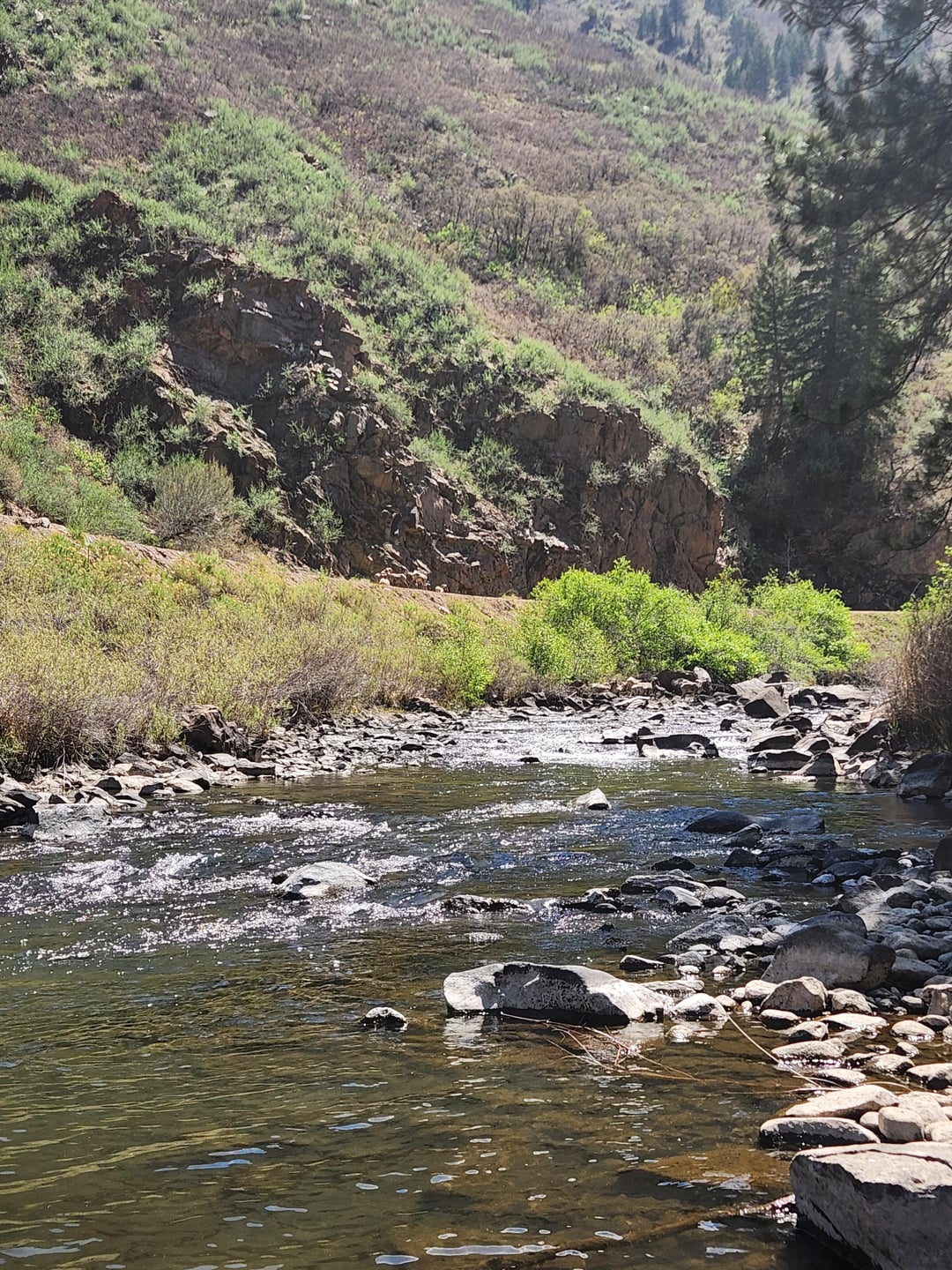 Wow, the water looks really low. Did you see any fish rising to those little olives, or just bugs coming off?