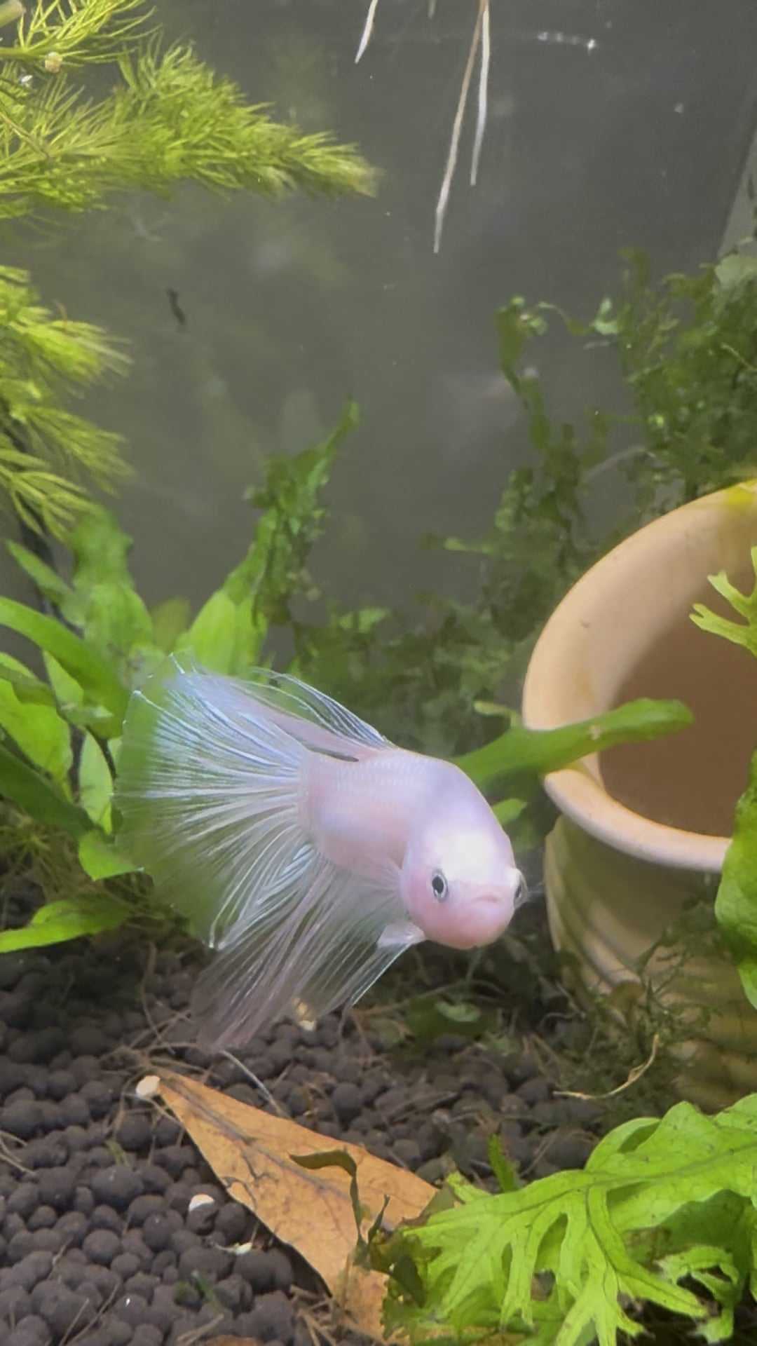 This is a new betta fish I picked up, he’s got a pearl color body and transparent fins, I’m thinking he’ll be a platinum white betta fish but what are your thoughts? https://v.redd.it/y0nr9wmpjjxg1 Posted by QueenAwakened