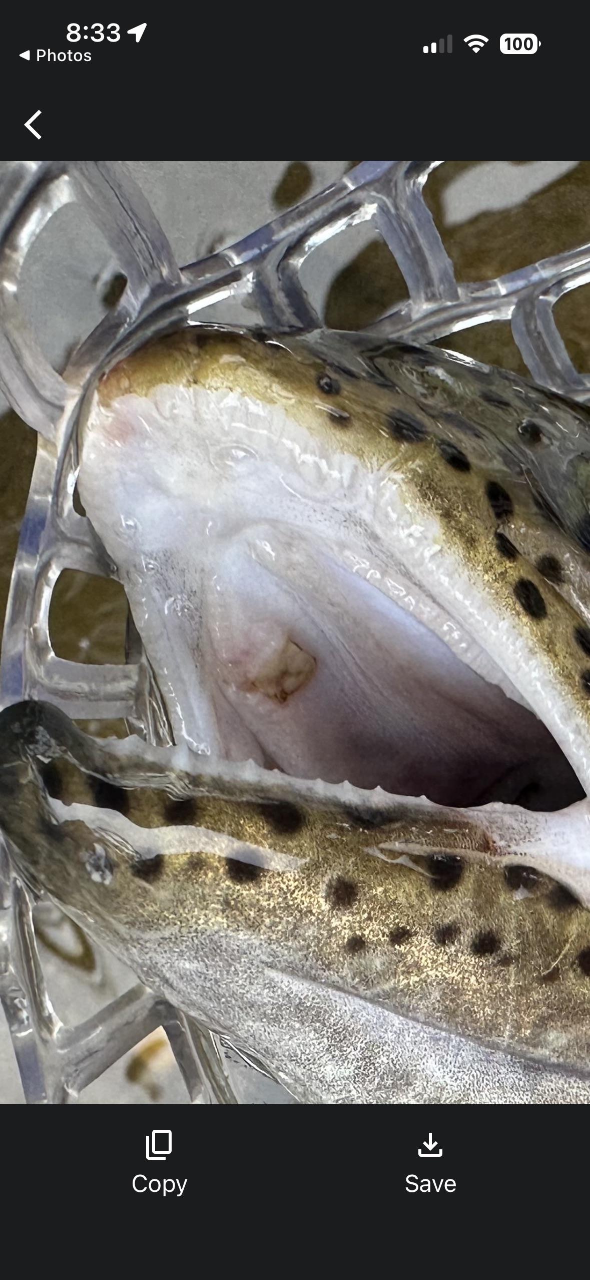 I’m not sure what this is in the fishes mouth. Is this just a sore or something I should report to CPW? Posted by Bright-Meringue-861