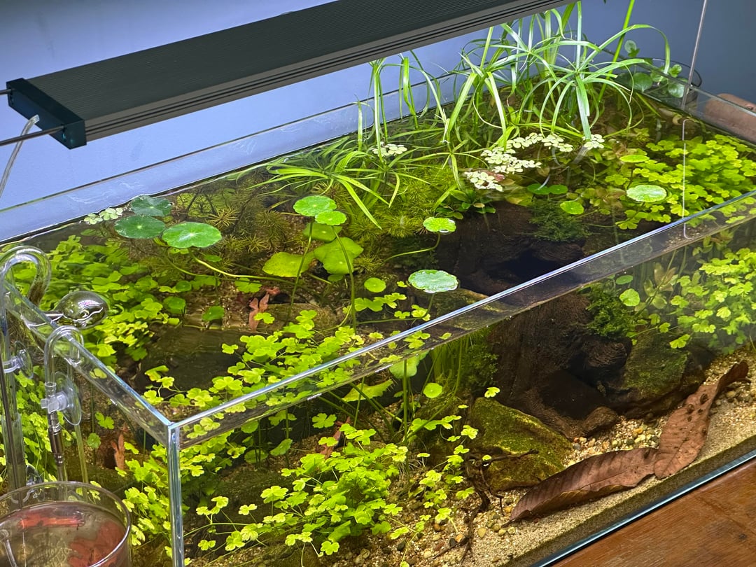 Won’t list individual plants but the one coming out the tank on the right is Cyperus alternifolius