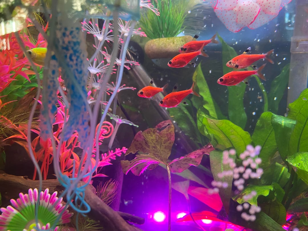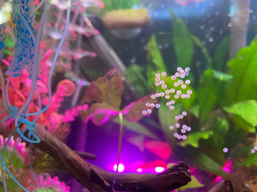 Freshwater tank with Corys, dwarf honey gouramis and pristella tetras, but also have a number of small ramshorn and bladder snails that I keep to squish for the corydoras ( they love em)