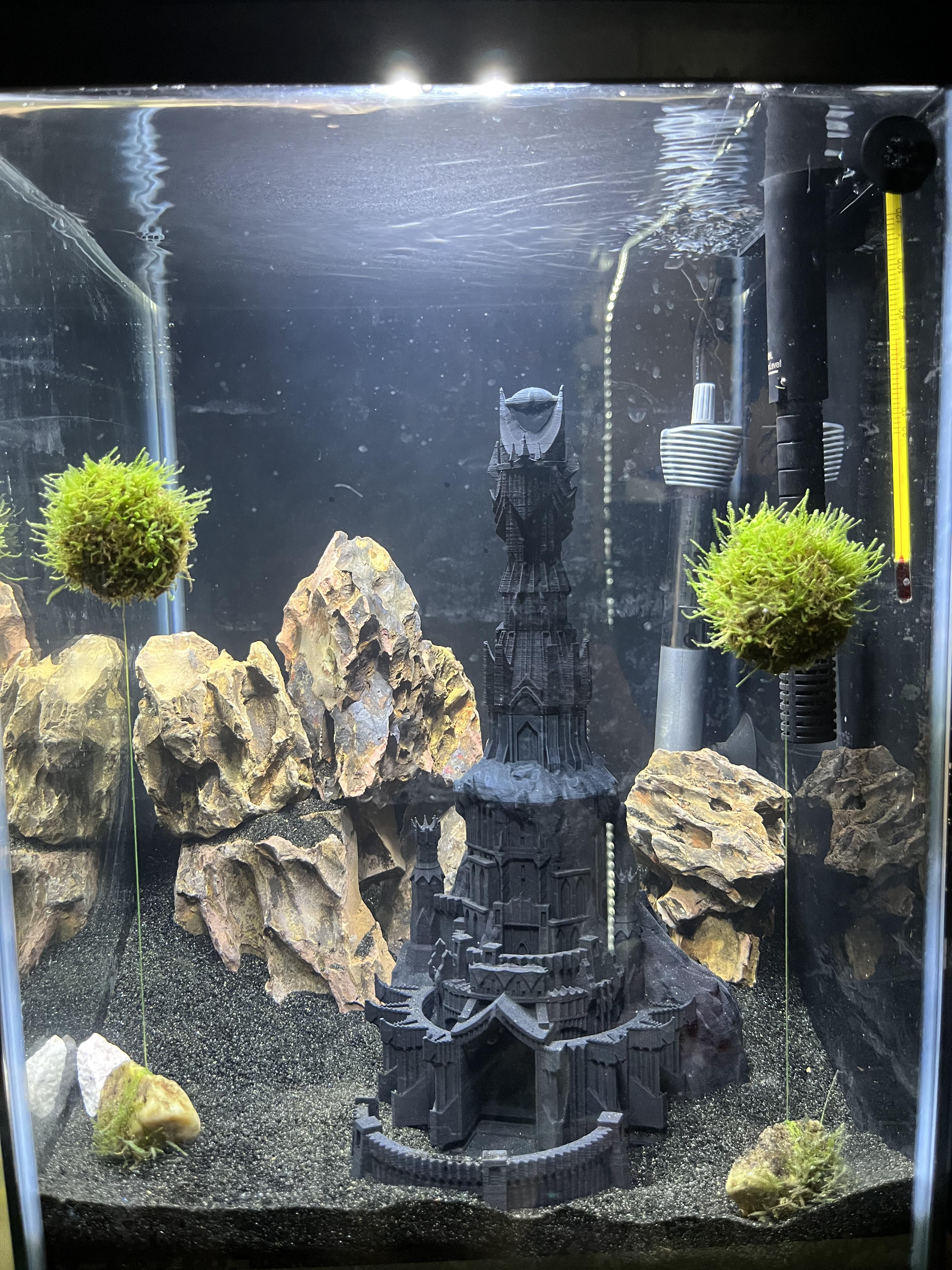 I don’t know what type of plants I should add to this tank. It’s a 10 gallon tall, and I’m looking for something that isn’t green. It’s also a little bit harder to scape due to the height. A vibrant red plant would be nice. I also don’t know what type of fish I should add to this. Lol also I decided to make it a lord of the rings theme. Any suggestions helps.