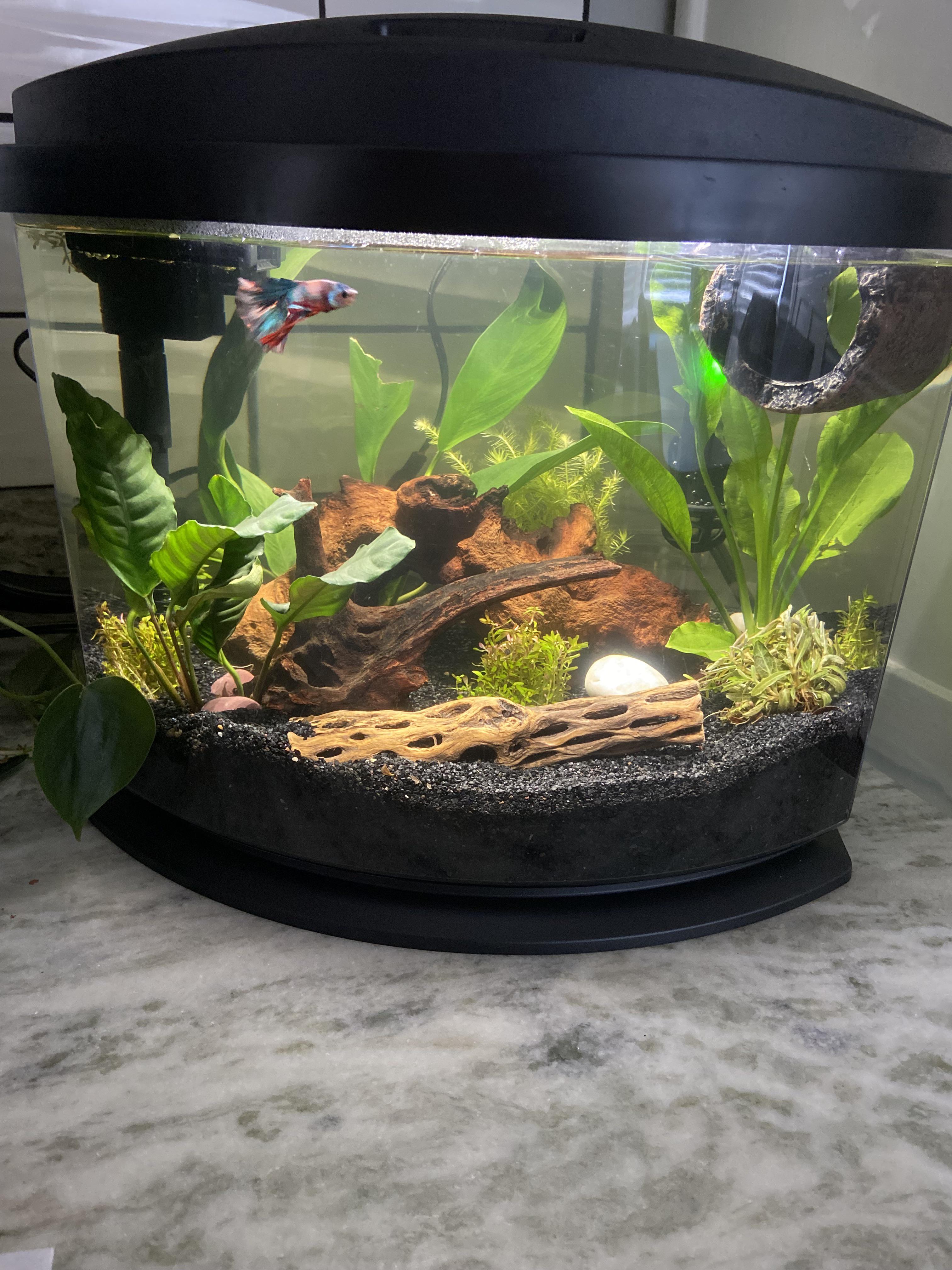 It’s a 5 gallon. I will be adding some snails and shrimp when the tank matures a little. please lmk how I did.
