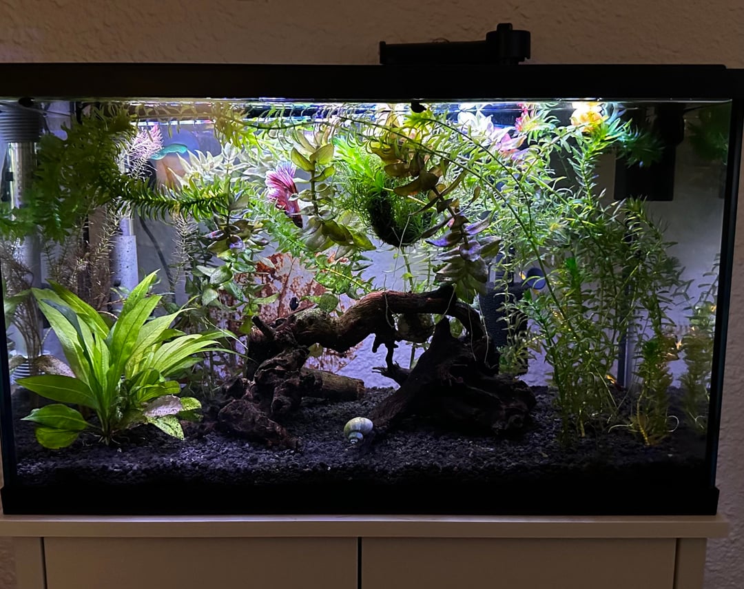 My heavily planted 10g tank! He loves his little jungle, it’s taken 3 months for natural growth.