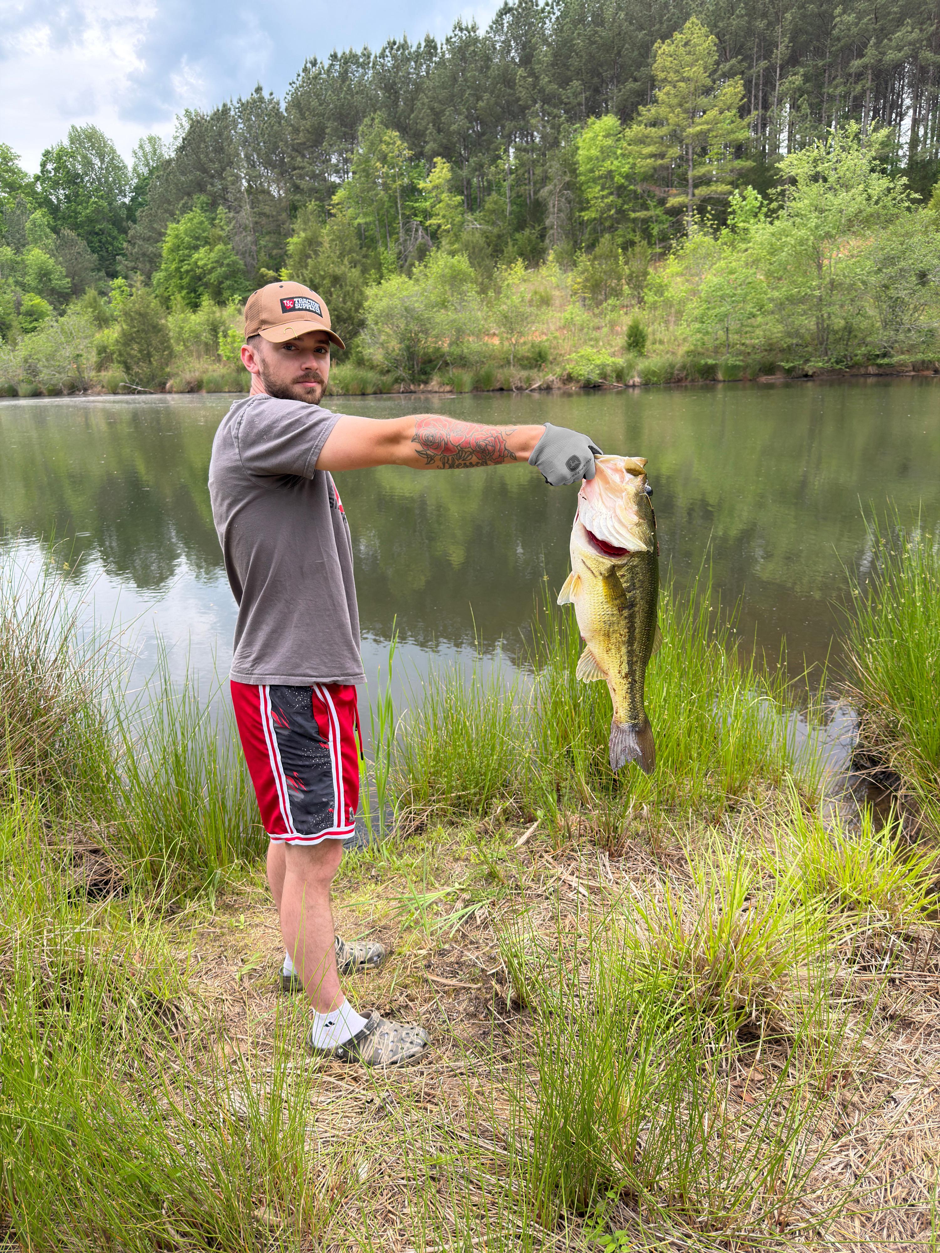 upstate SC bass. we have big ones too. caught off the bank. yes i know im wearing gloves.