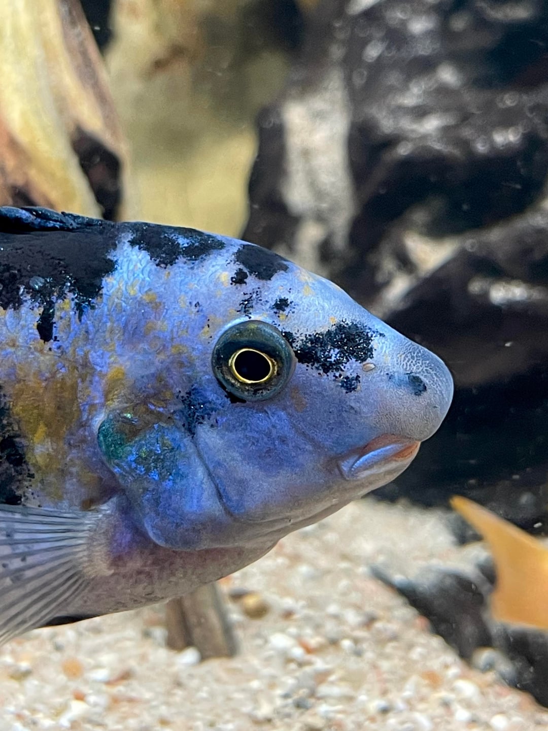 One of my favorite fish! Raised him from a 1/2 inch fry. OB male labeotropheus fuelleborni. Posted by tumnn