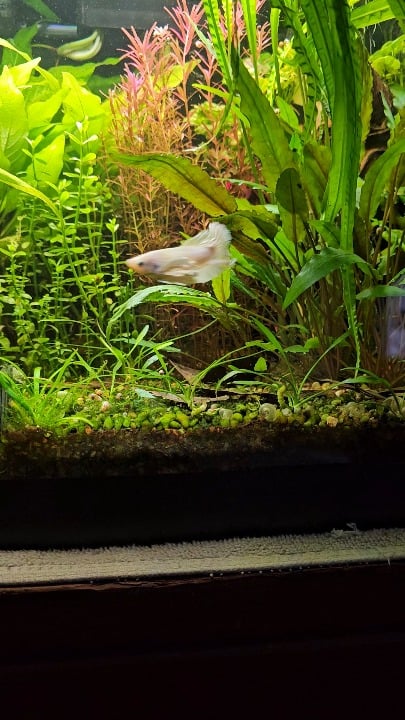Just sharing my betta, he lives in a 20 gallon tank with some kuhli loaches, shrimp and snails. He's a turd, but hes real cute 🥹