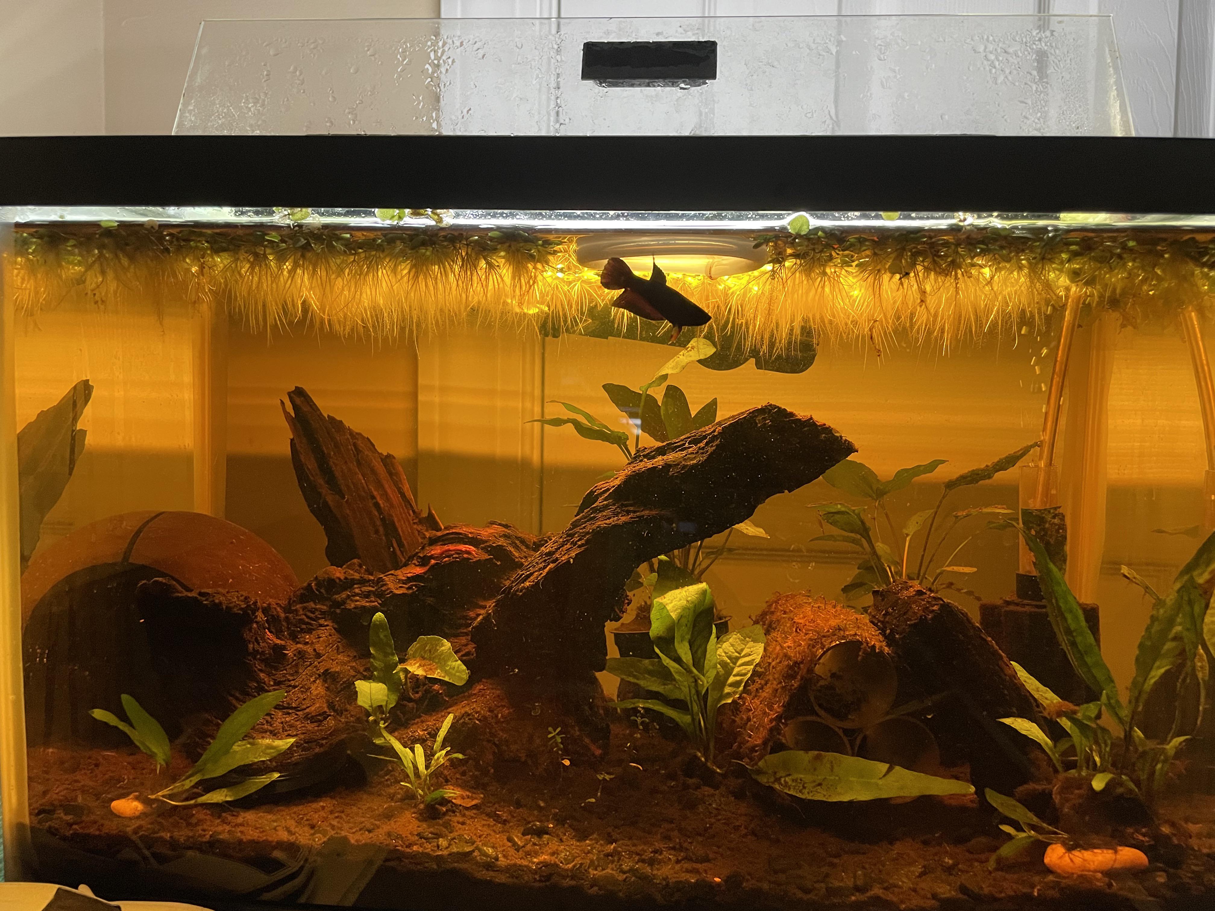 Lol same setup ig i still need to add some almond leaves tho it’s only been 2 hours since I moved him in