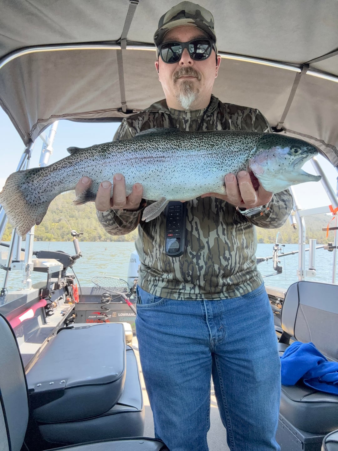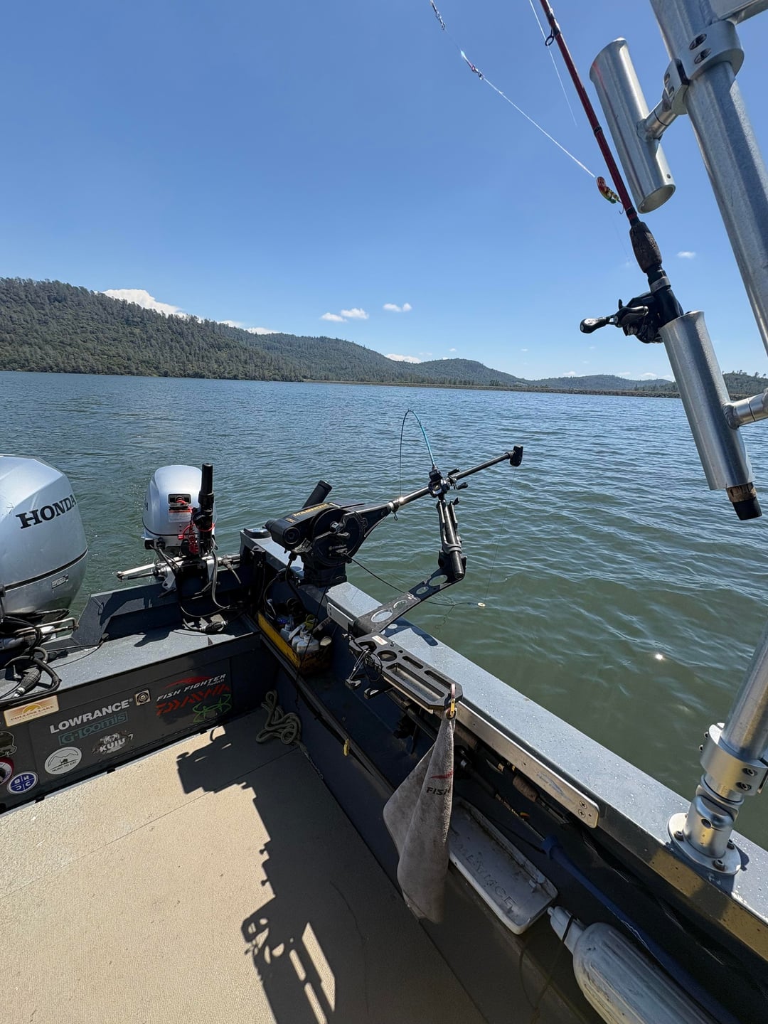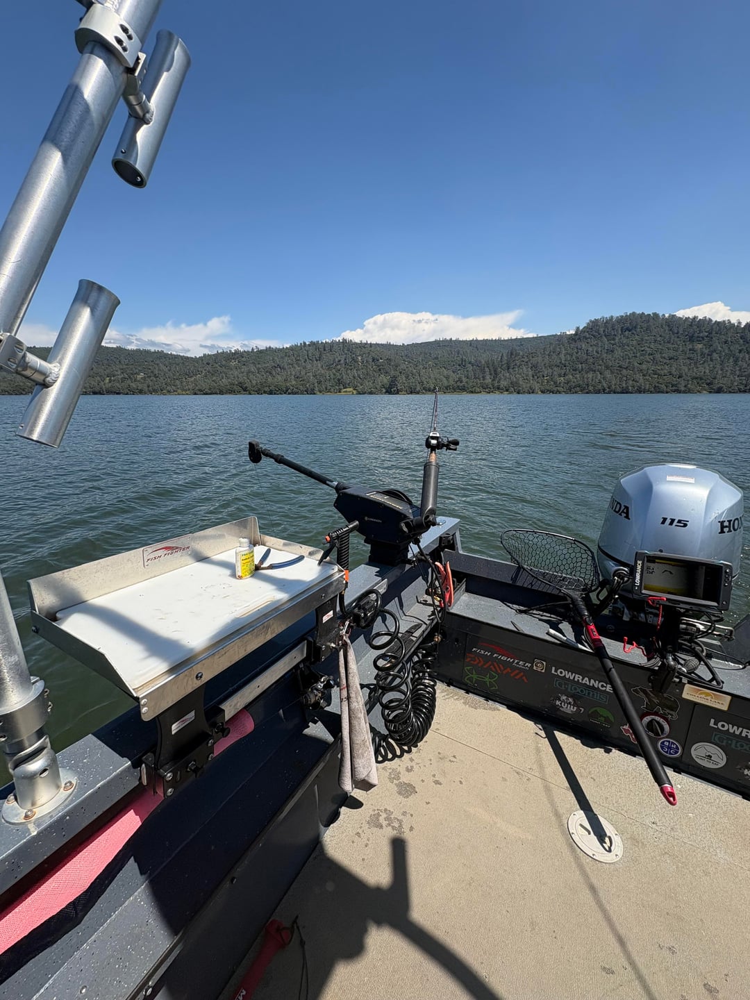 I had the opportunity to hit the water for about 3 hours this morning. It was fairly slow as far as the fishing was concerned. I was fishing a small lake that just had a 3 day trout tournament fished this last weekend. I landed (3) 12-15” rain bows and this nice 6lb 3oz rainbow. I also included a few pics of my boat setup when I fish alone with 2 rods. I fish alone a lot and this setup has been my favorite so far. Most everything is up and out of the way which makes it easier to net fish when fishing alone.
