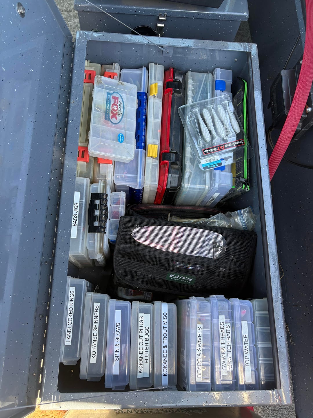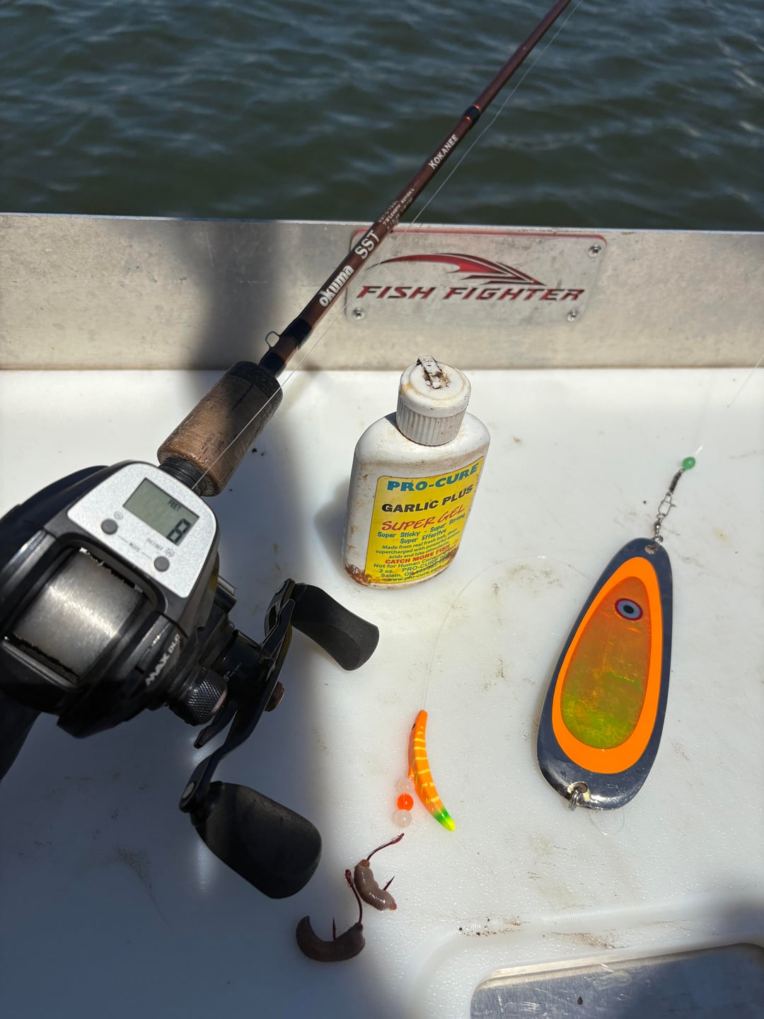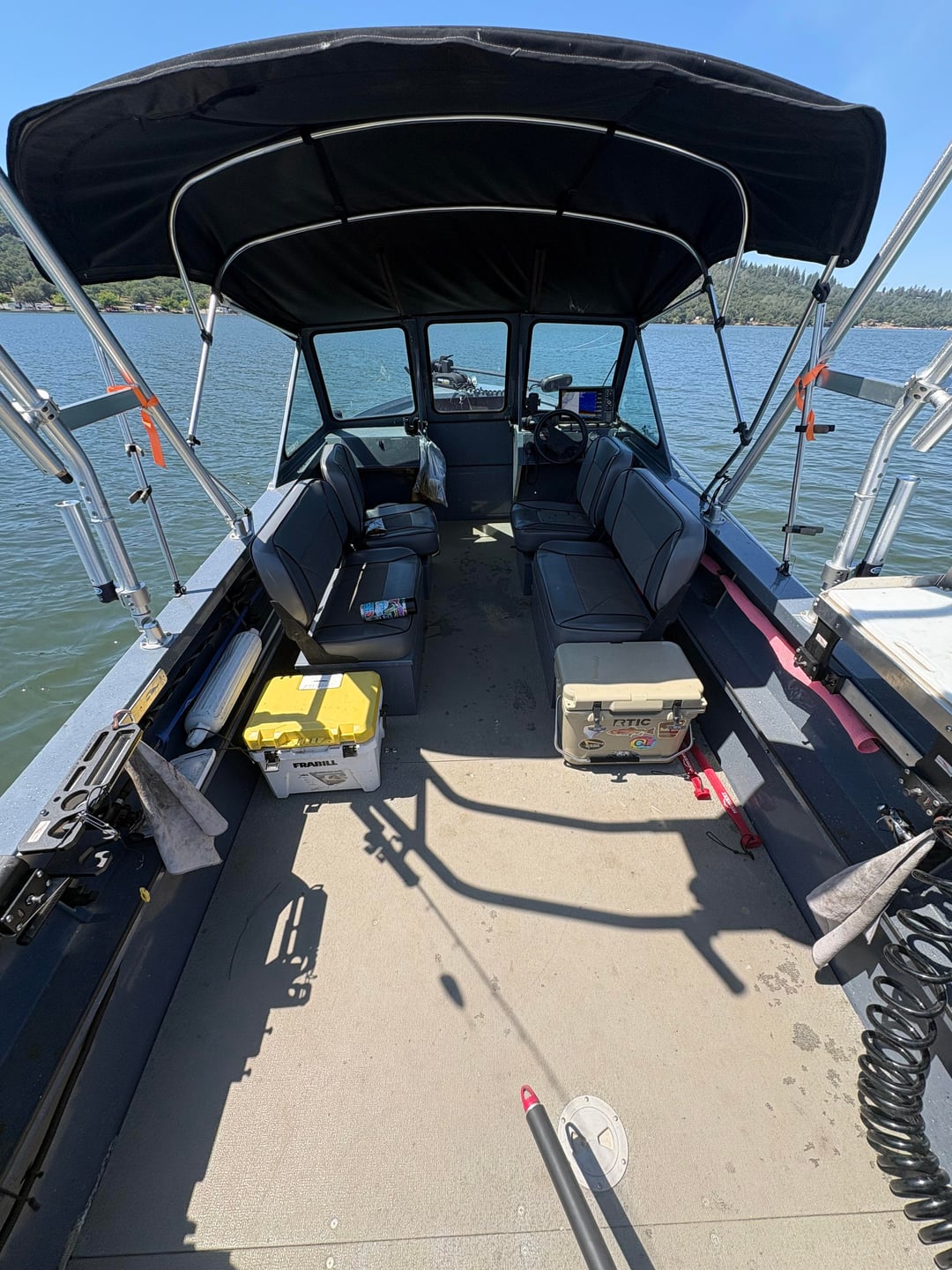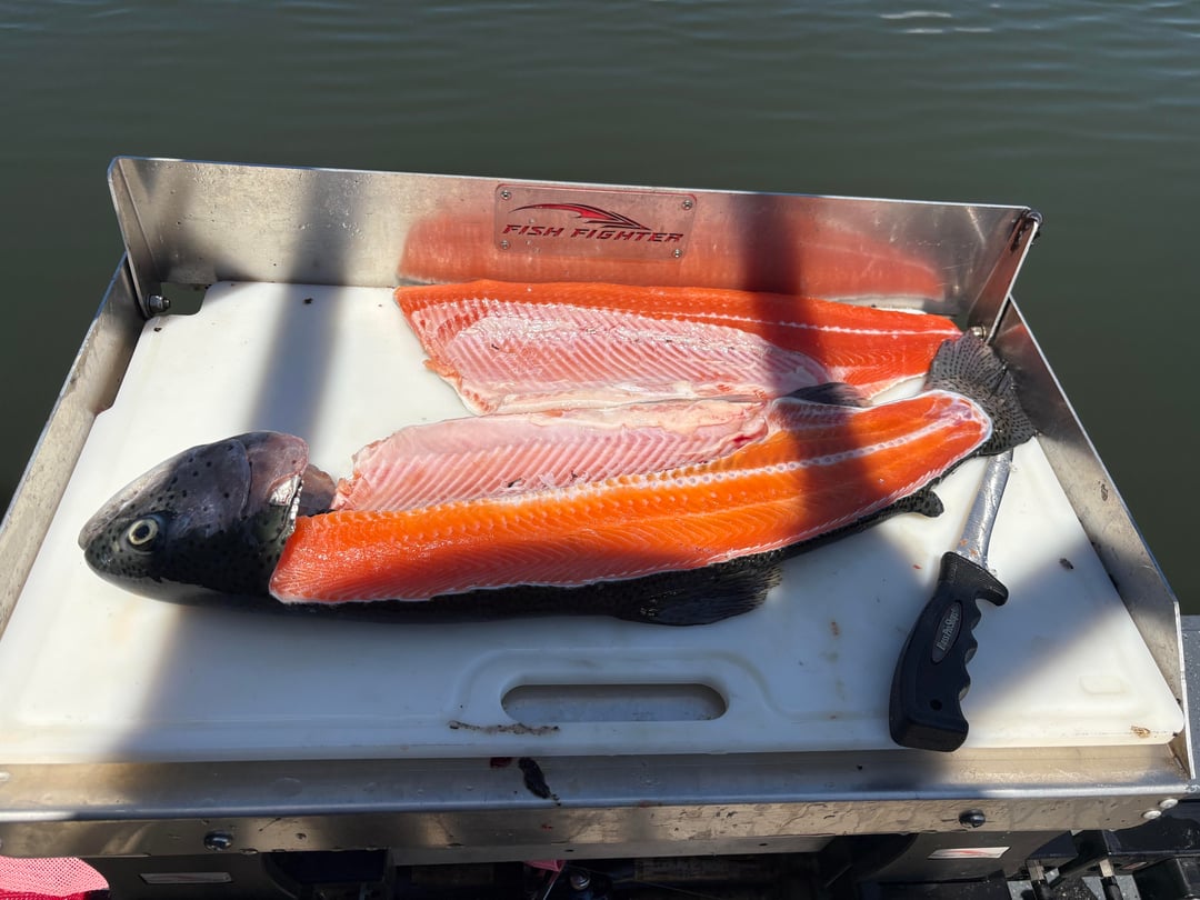 I had the opportunity to hit the water for about 3 hours this morning. It was fairly slow as far as the fishing was concerned. I was fishing a small lake that just had a 3 day trout tournament fished this last weekend. I landed (3) 12-15” rain bows and this nice 6lb 3oz rainbow. I also included a few pics of my boat setup when I fish alone with 2 rods. I fish alone a lot and this setup has been my favorite so far. Most everything is up and out of the way which makes it easier to net fish when fishing alone.