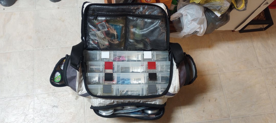 My abu veritas bag is original 1st run from 2009. Still going strong. No rips or tears. Everything still works on it. I saw this on clearance this morning so I grabbed it.big nice bags are hard to find anymore. except for the few booyah baits on left. All the spinners my dad friend made by hand.