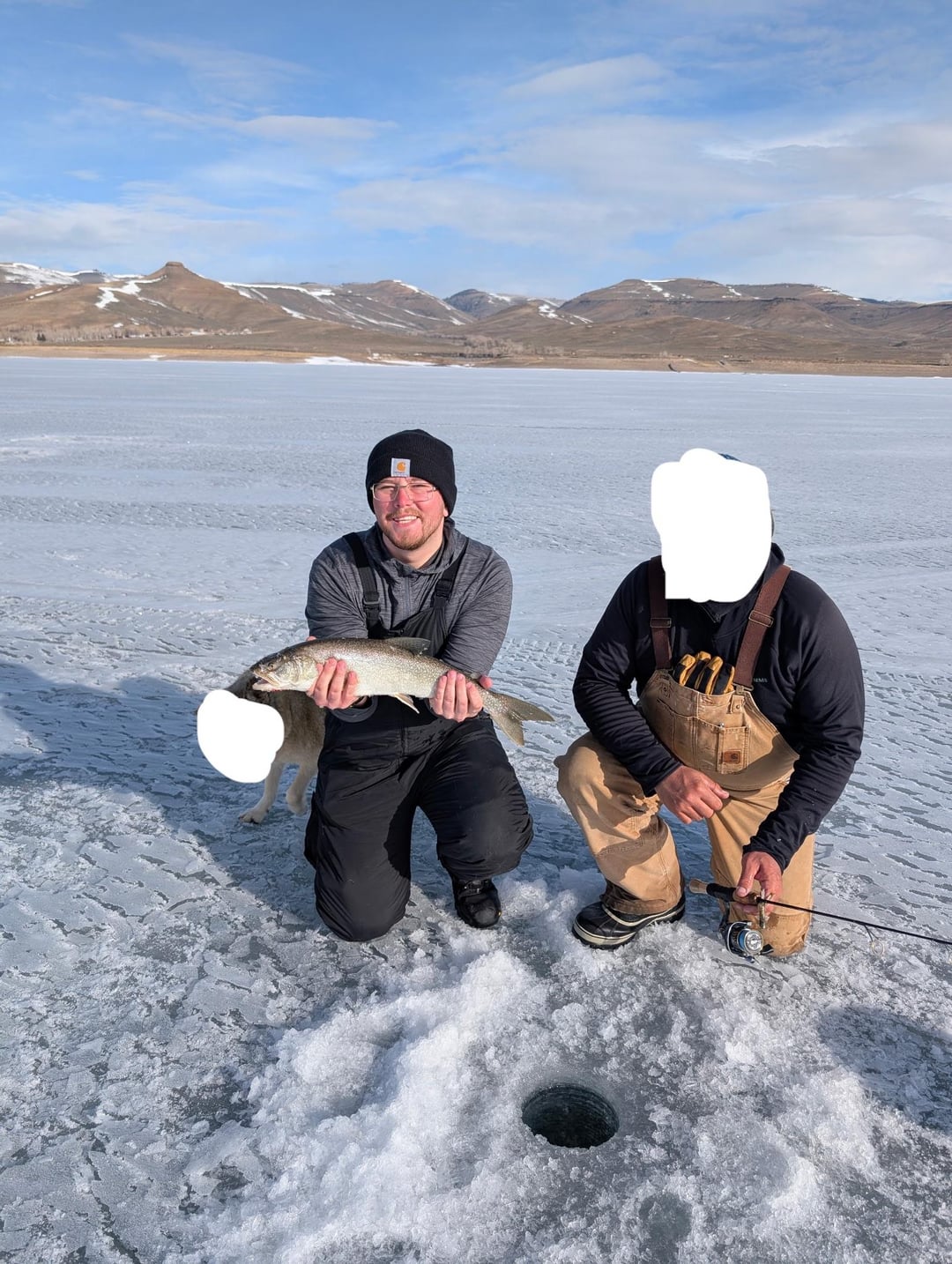 First time out ice fishing for either of us, luckily we had a friend who showed us the ropes and had gear. Many more pics of lakers where that one came from, dad ended up catching dinner at the end of the day. Also my first time fileting by myself. Once in a lifetime experience, made the trip out to CO for me!