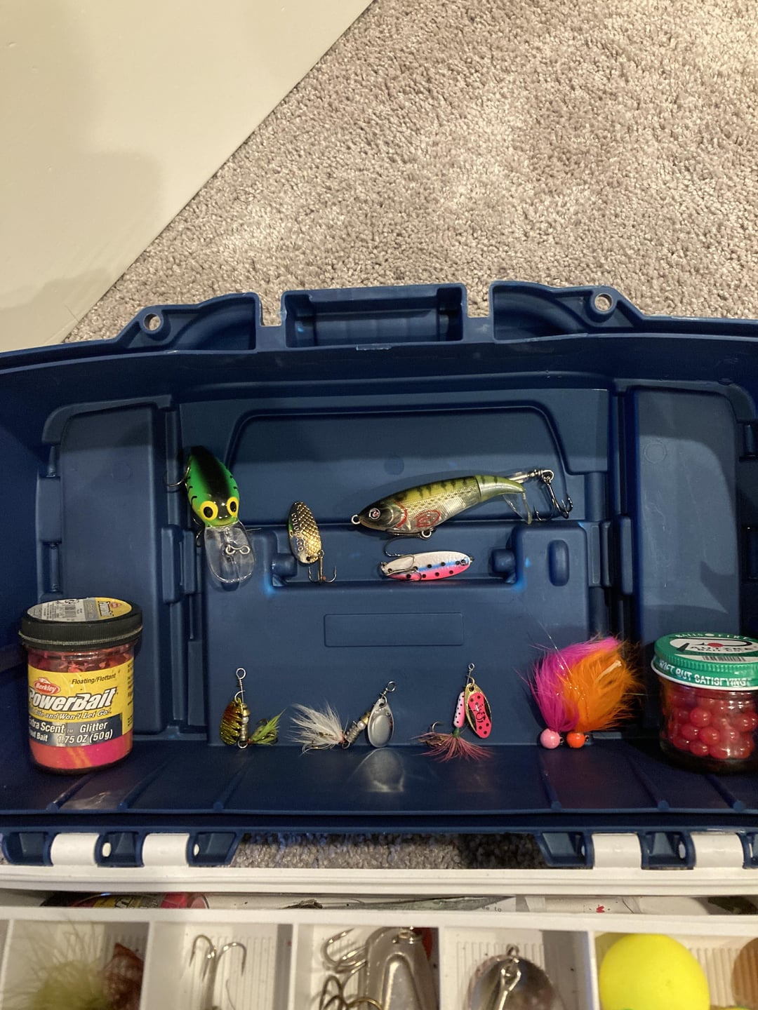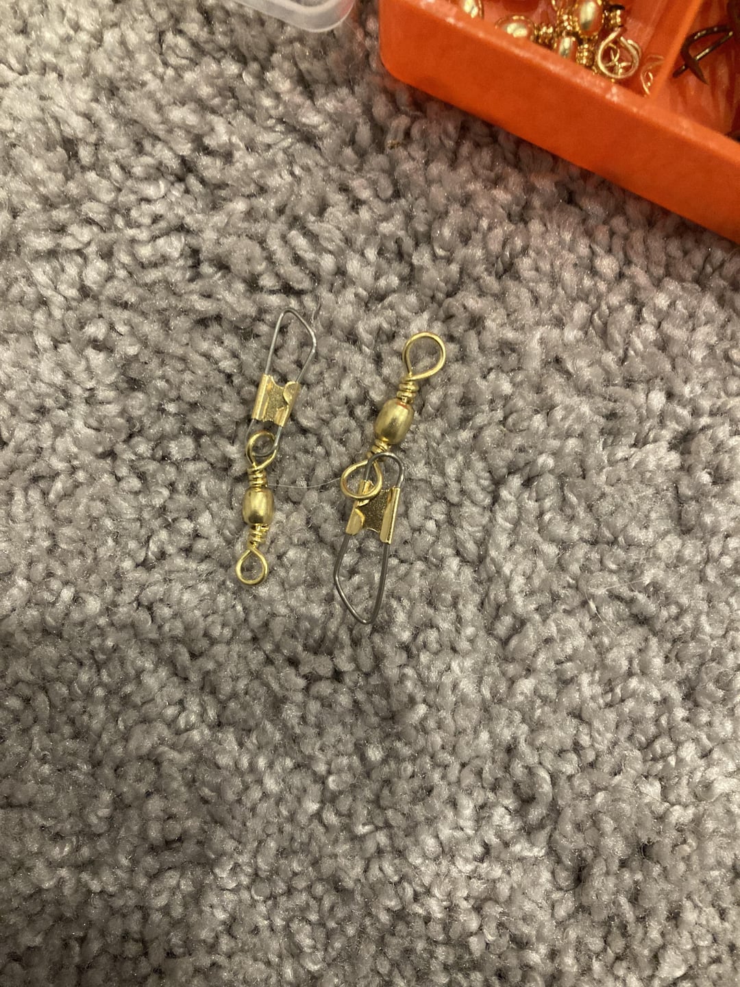 I just recently started kayak fishing, and have been out a few times but got skunked every time for rainbows (or browns) and bass. Even went to a recently stocked lake on a sunny day but still didn’t catch anything. Hoping to find advice or suggestions. Here is what I use (I also use nightcrawlers but they are not pictured). I have trouble getting my spinners deep below top water. I usually use a drop shot rig with a T knot (one of them looks a lil funky I know but it works) and haven’t had much luck. The mono leader is 8-12 lb I think. I use 15lb braided as my main line, and this golden snap swivel (not my favorite since it’s easily visible). Any suggestions?