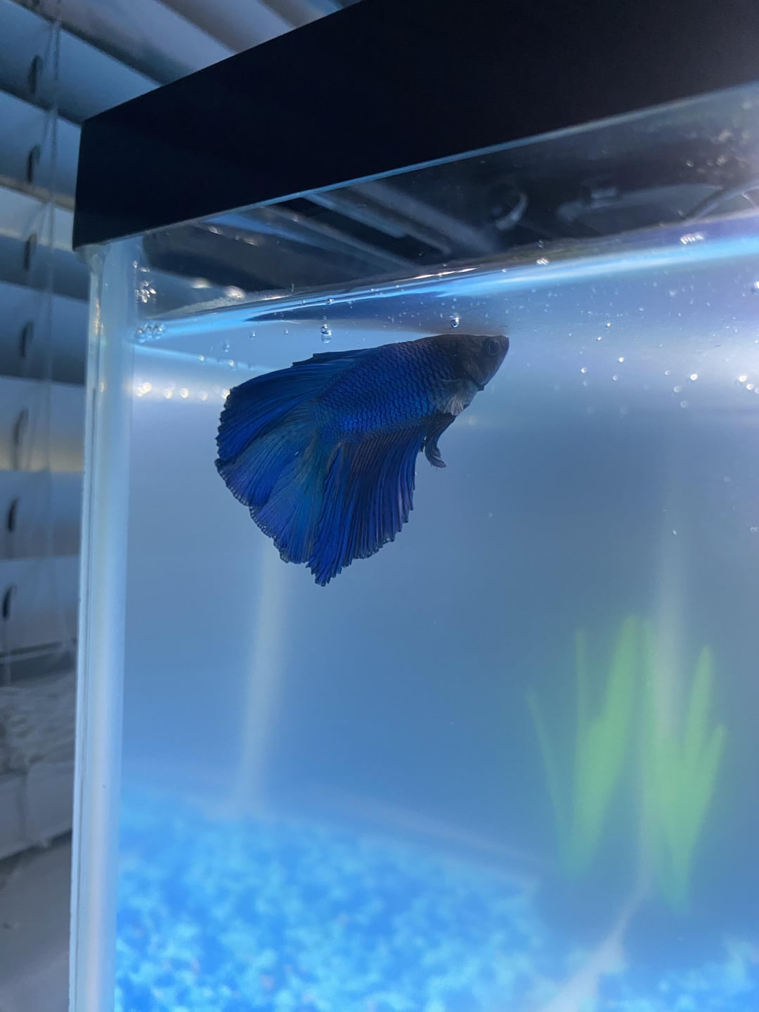 Please get a better tank or rehome him. There are lots of things on this sub about proper care. Bettas need hides, live or silk plants, a heater, etc. You can use my tank for a start reference. The reason your water is cloudy is because you most likely didnāt cycle your tank and you donāt have a filter so there was a bacterial bloom. Please donāt impulse buy any animal if you arenāt educated and donāt have the money š