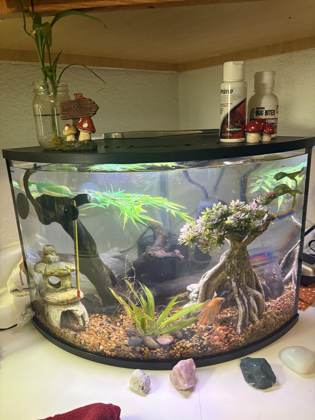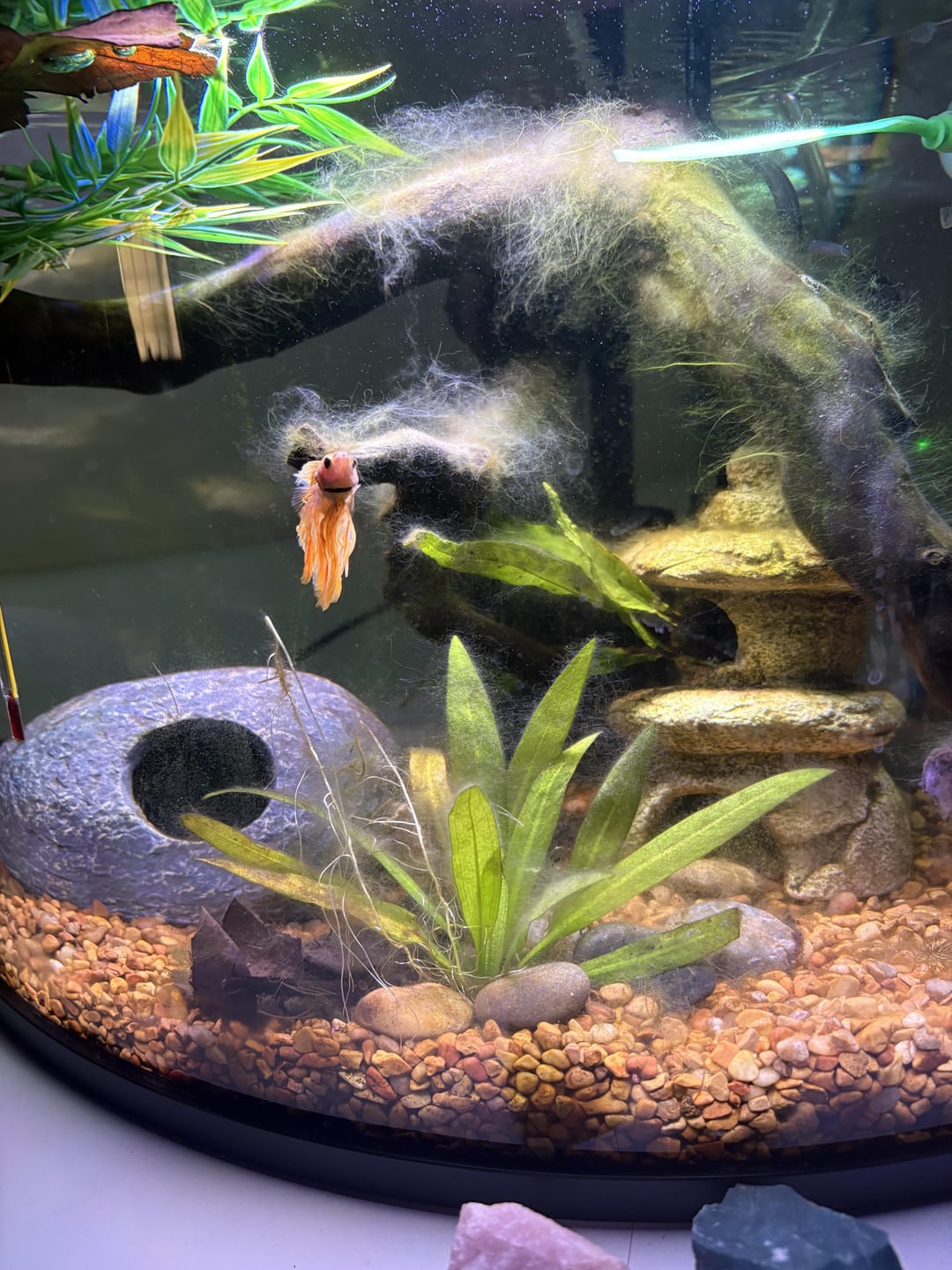 Mac my betta he’s over a year old now in a 6 gallon. I struggle to keep plants alive but was thinking about getting the aquarium co op easy green and some water weistera since it’s a low light “easy” plant. I’ve been able to keep this Amazon sword plant alive by putting flourish root tabs in it every couple weeks. It doesn’t look the best but it’s alive!!! I do weekly water changes but have been struggling with hair algae. I get overwhelmed easy so if I could have some good easy advice I’d appreciate it thanks everyone!!