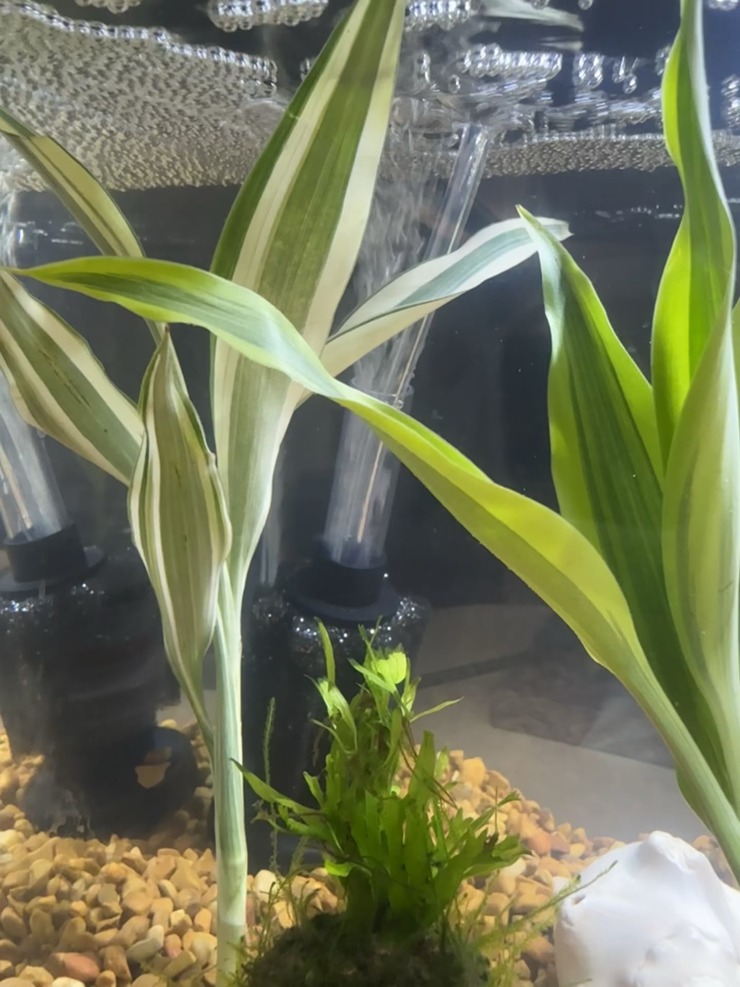 Please see my last posts for context. Yesterday , I made some changes to my tank after posting in this sub about my dumbo half moon male’s fins were all fucked up. Out of nowhere his tail was shredded. There are pics of his tail in the last post. Anyways, I took out his last filter because it seemed like it was too strong. I went with a sponge filter per everyone’s recommendations and I removed all of the fake plants and put in live plants. This tank is a work in progress. I will put more plants this weekend, but this was the best I could do on short notice.